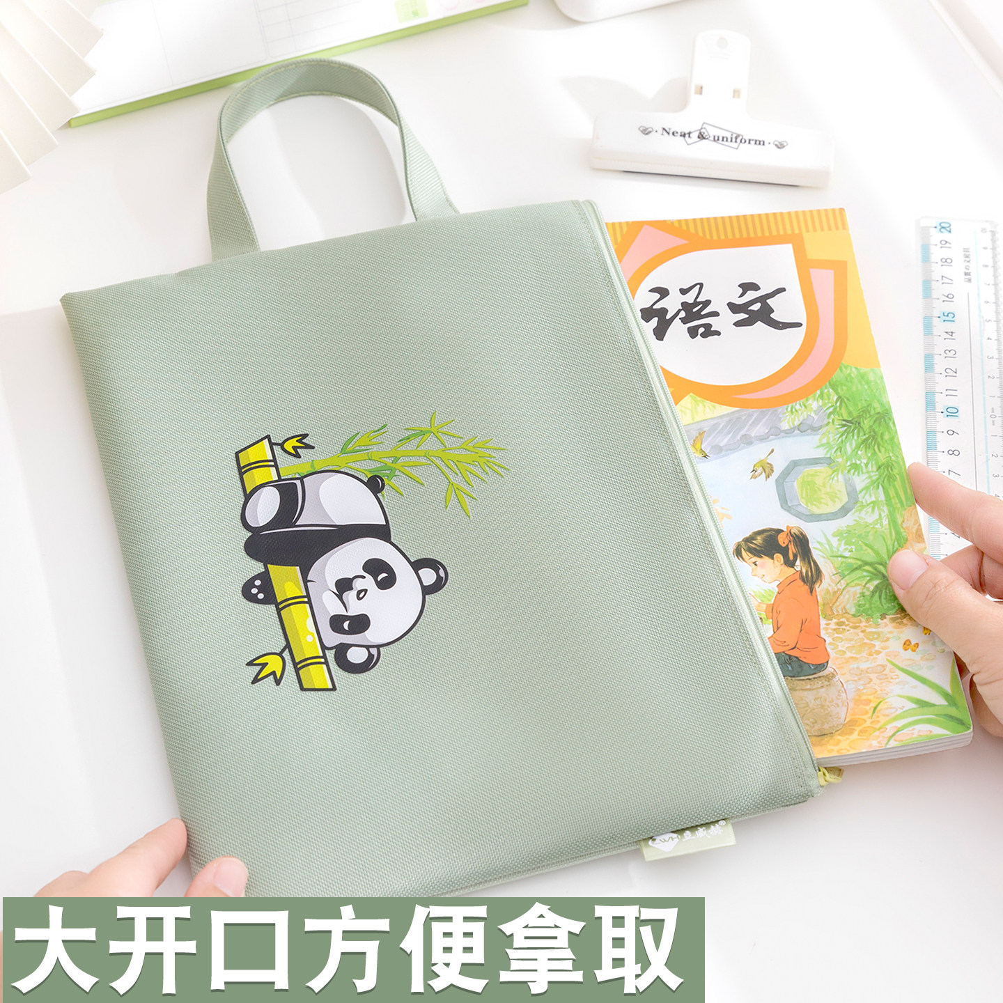 B5手提文件收纳袋一年级专用文具袋熊猫卡通高颜值书本袋小学生用便携小号文件袋补习手提包学科分类资料袋由