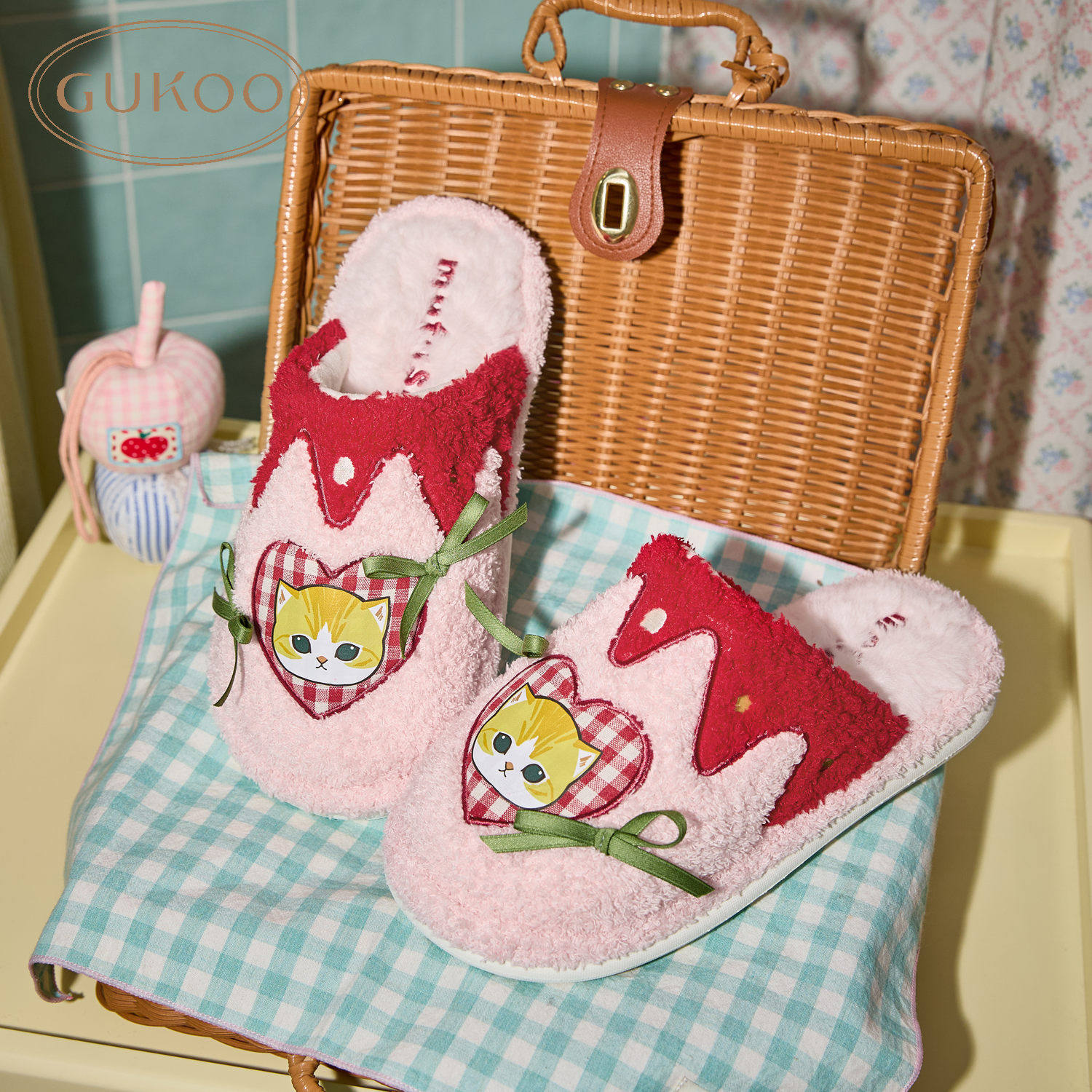Gukoo 果壳棉拖女冬鲨鱼猫系列轻红品毛毛地板家居拖鞋由