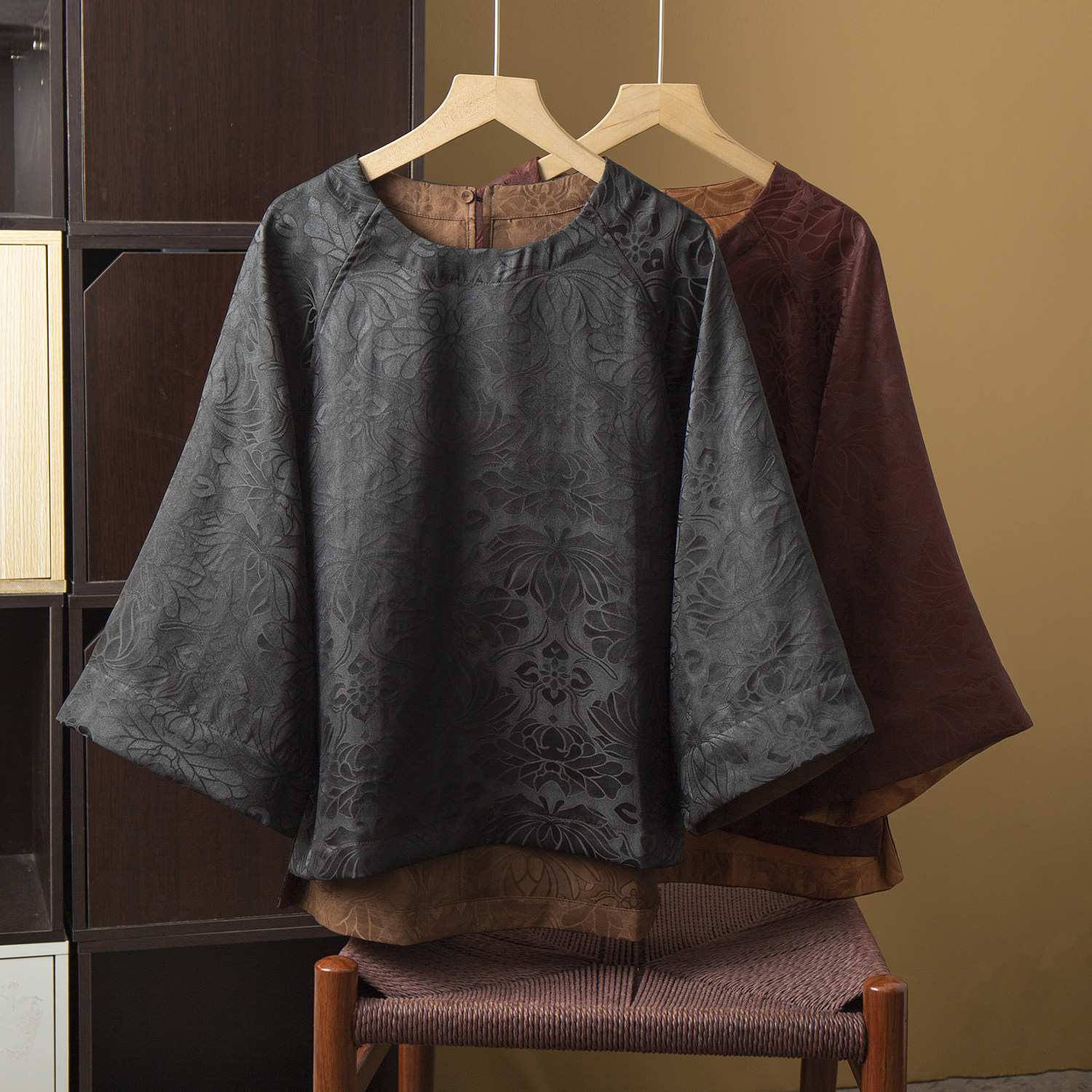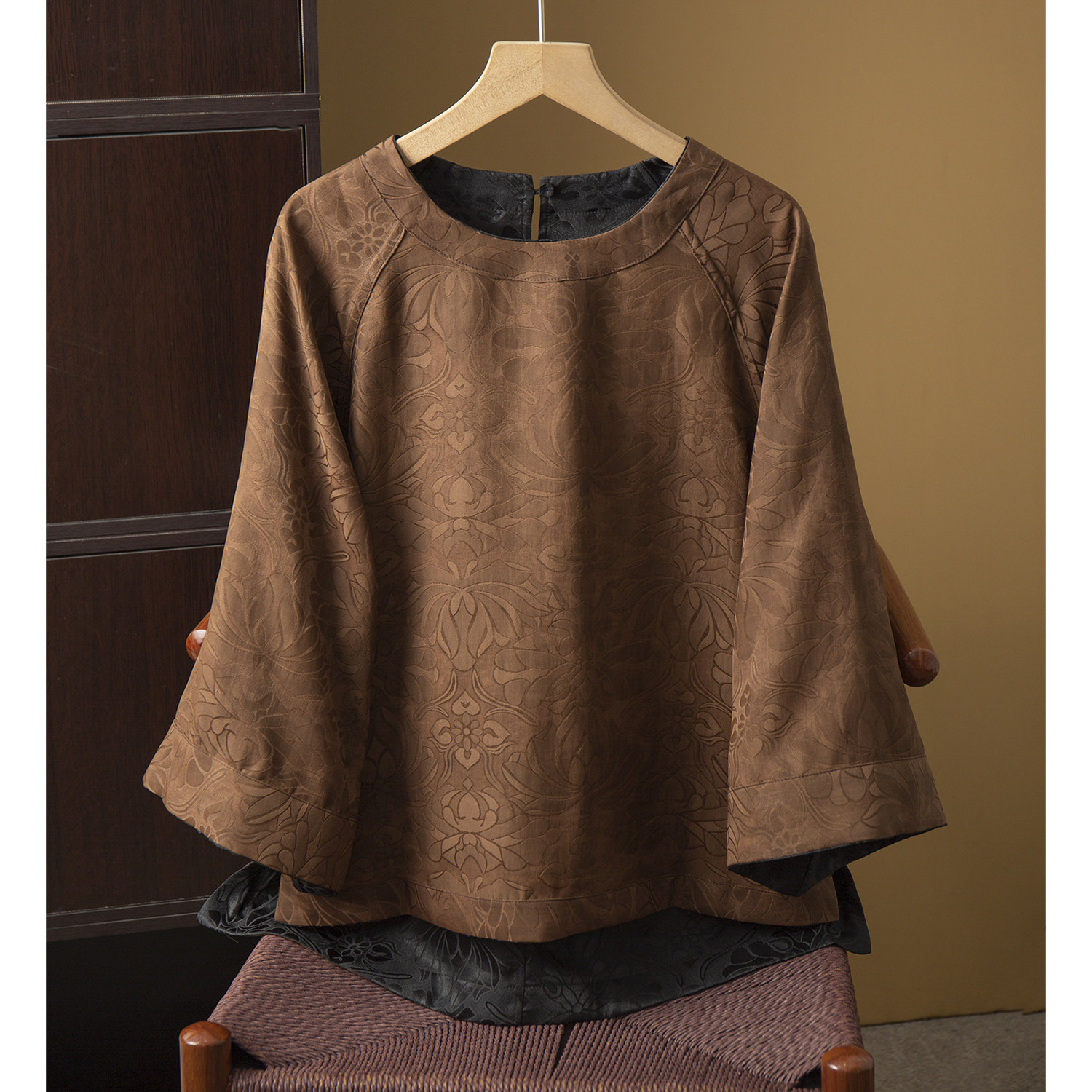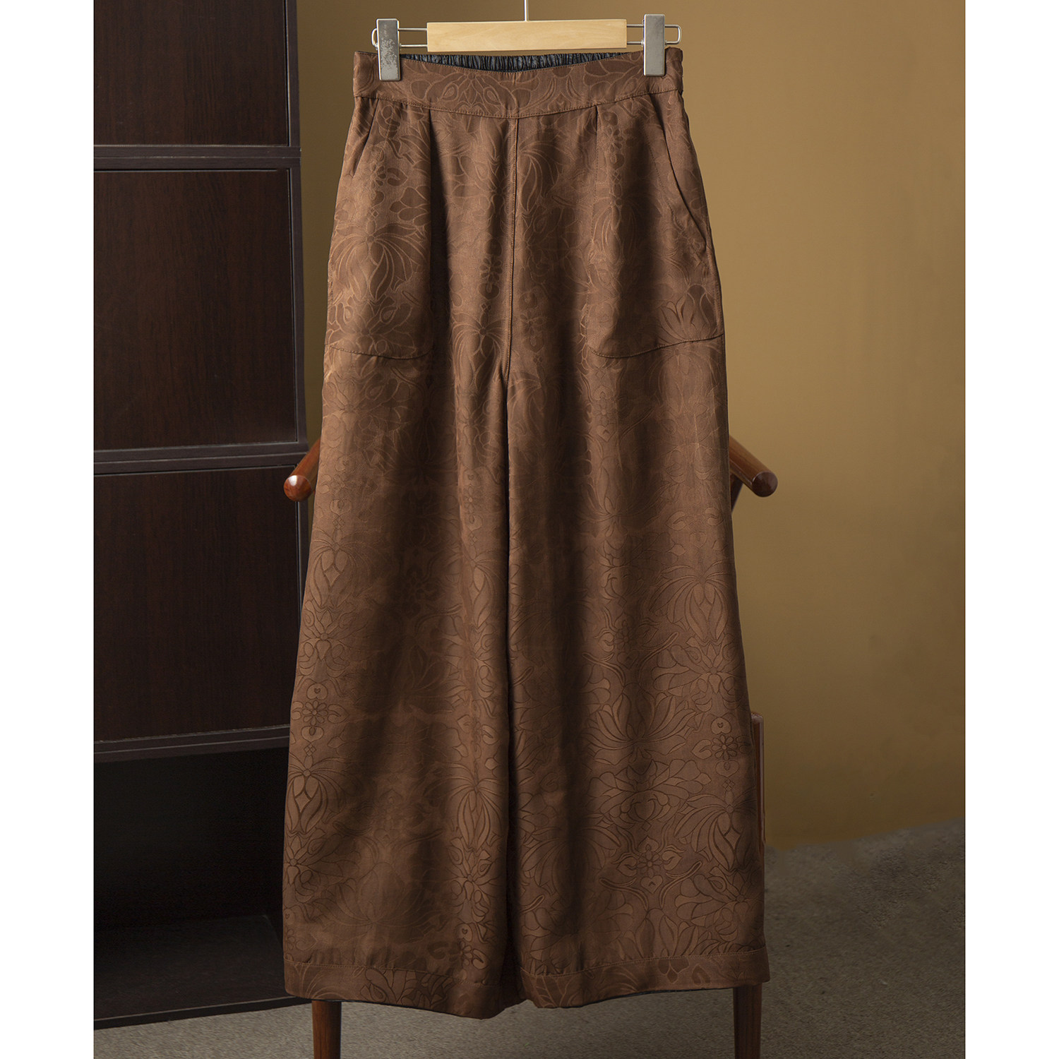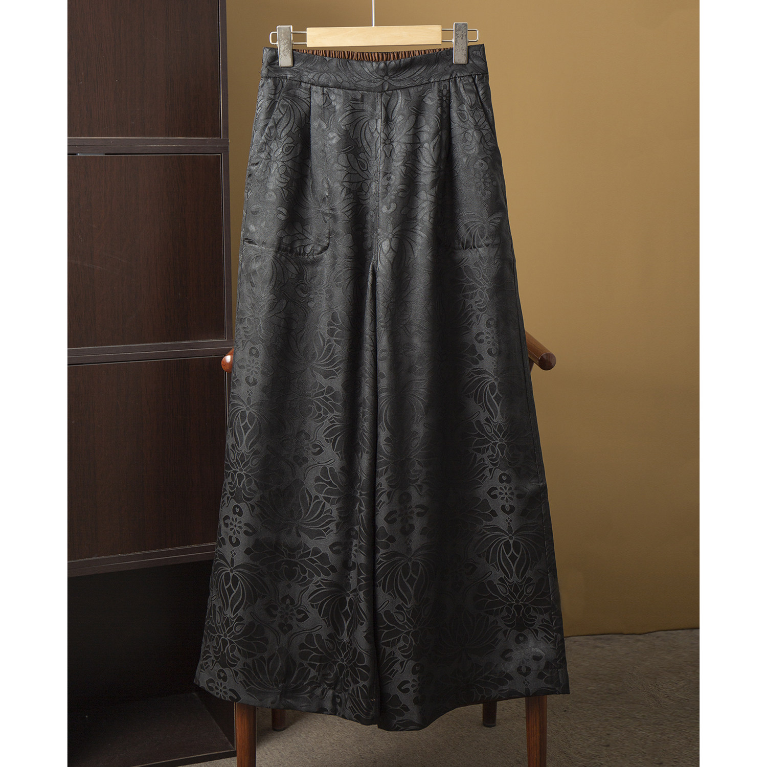 丝艺双面穿100%桑蚕丝40姆米香云纱提花真丝套装 两件套 上衣阔腿裤由