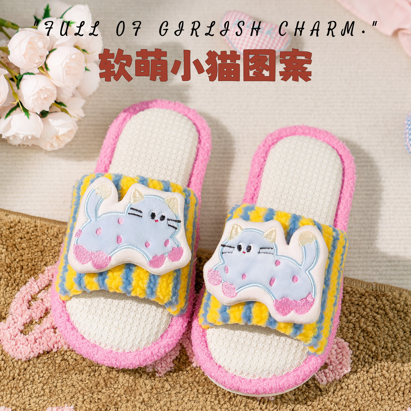 为您提供商品棉麻布拖鞋 女室内家居家用防滑透气吸汗静音四季 可爱小猫亚麻拖鞋的详细介绍,