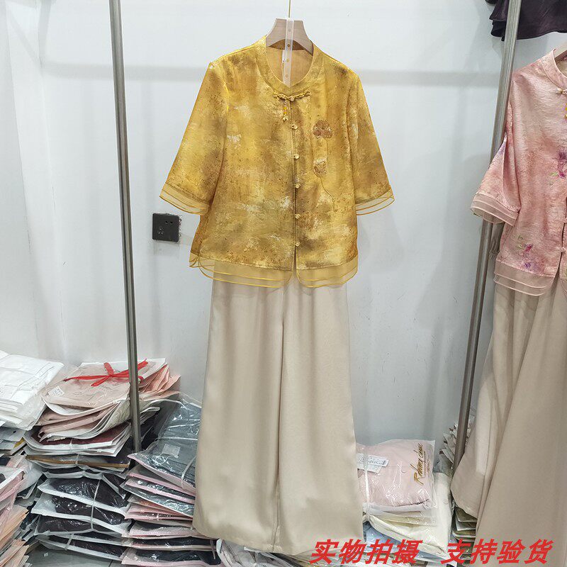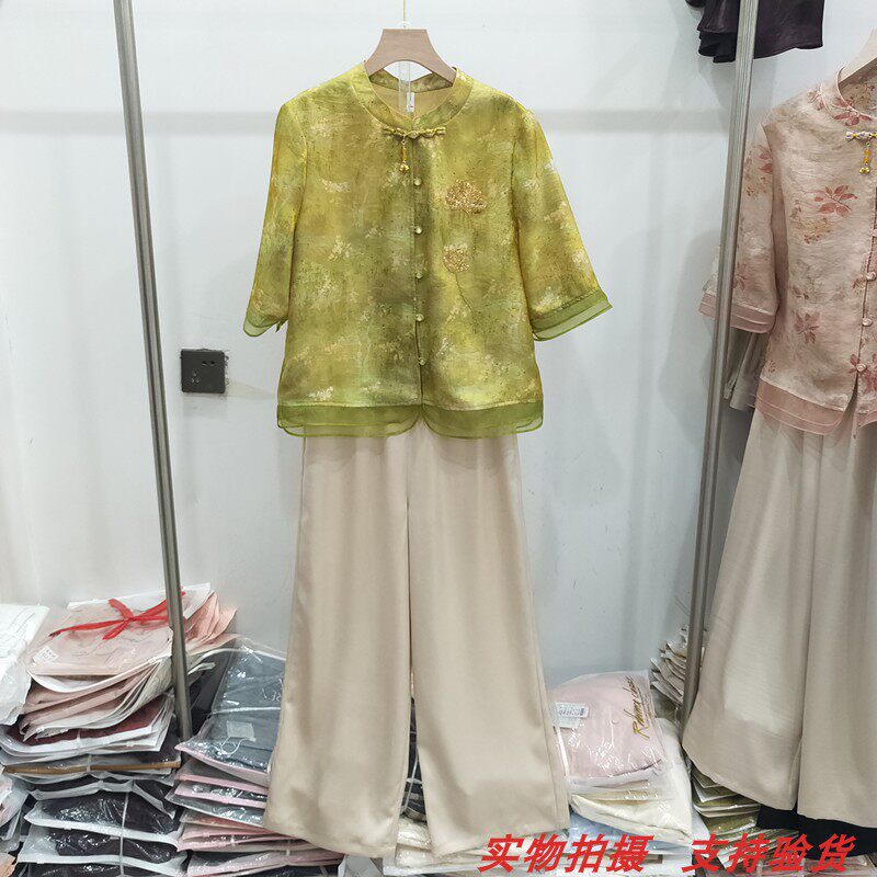 两件套套裤 金娅海伦826103夏季 女妈妈 直筒裤 衬衣 新款 轻奢新中式由