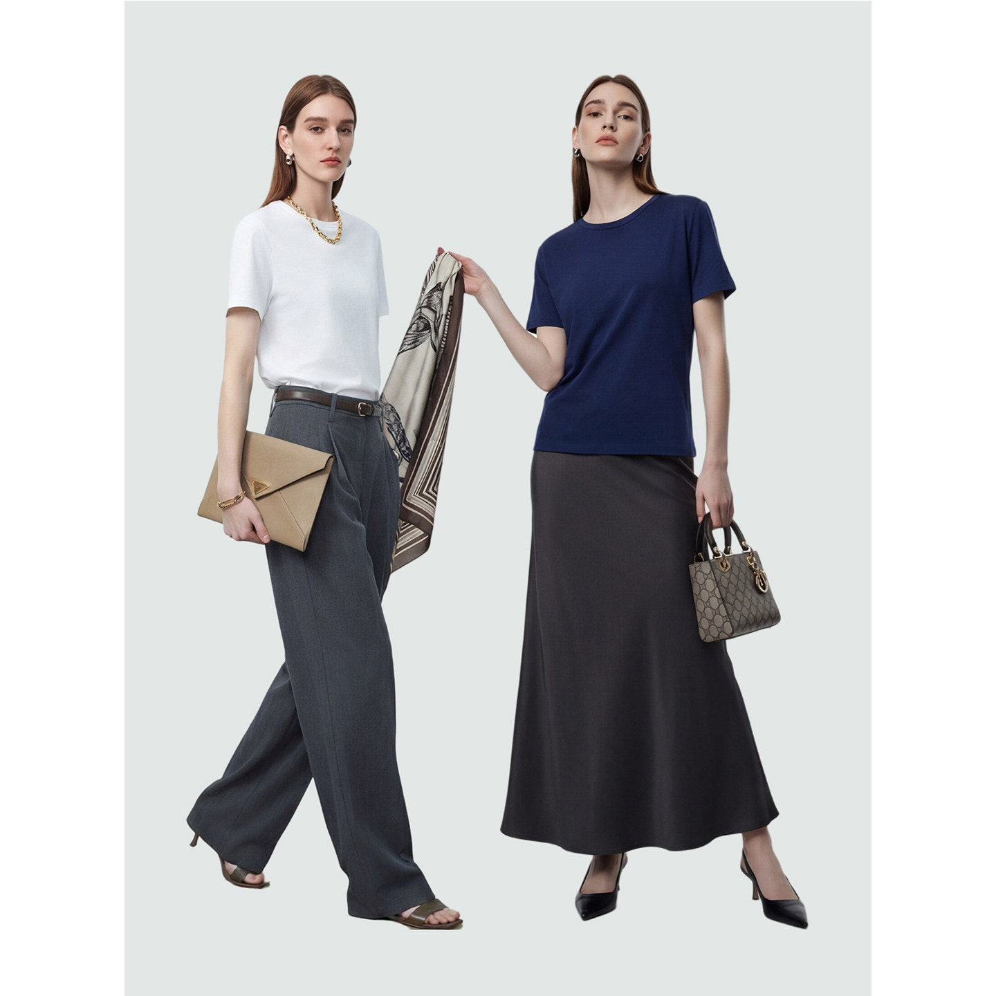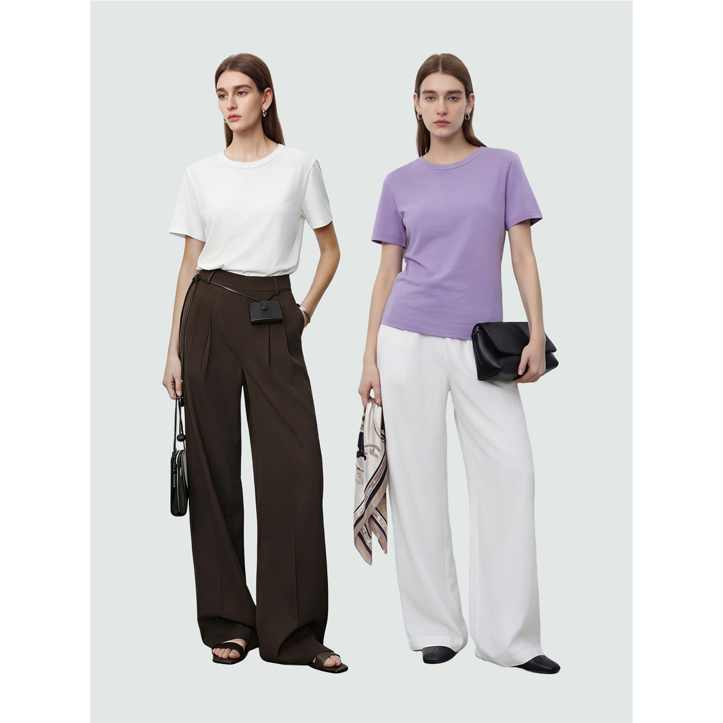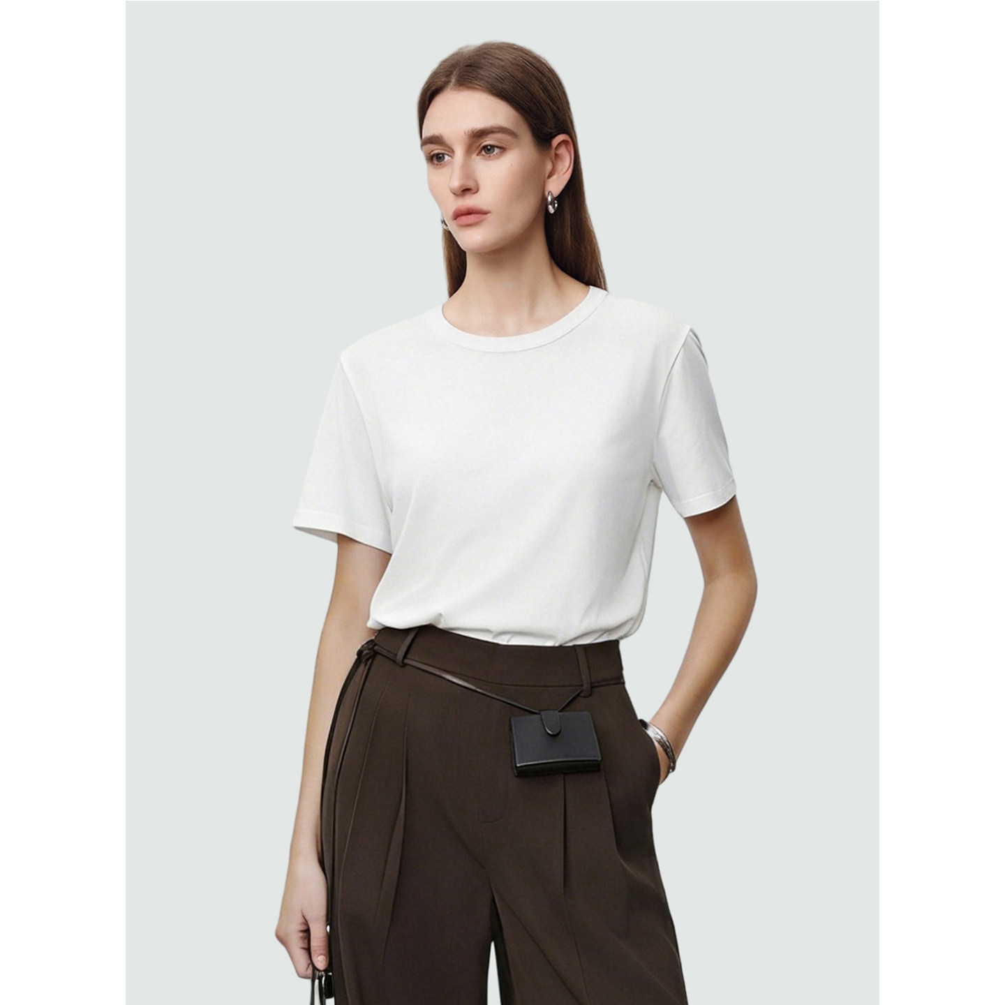 爽滑裸感液氨棉真丝贴条圆领T恤女26春不易变形WAN能内搭t Sue.M