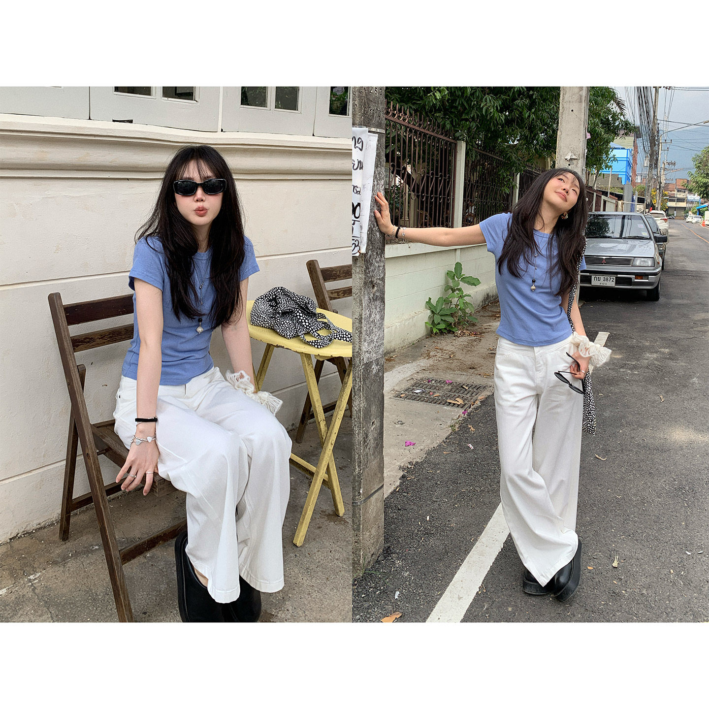 LA短袖 宽松百搭印花上衣白色11 T恤男女情侣落肩袖