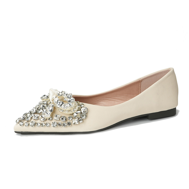 法式 新娘婚鞋 仙女百搭蝴蝶结名媛风瓢鞋 高级感水钻尖头平底伴娘鞋由