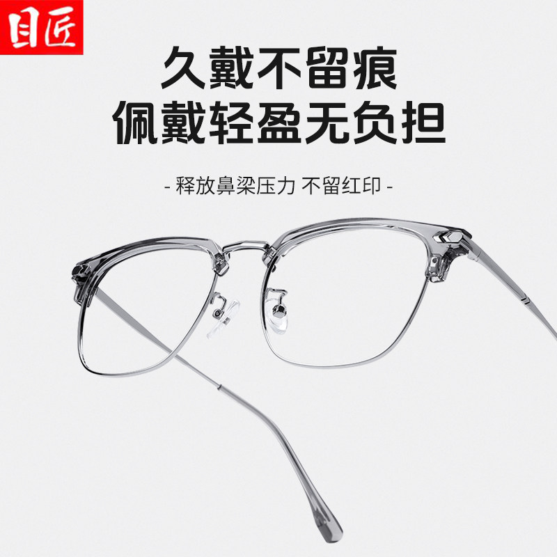 可配度数近视框眼镜防蓝光 半框商务眼睛架大脸定制成品光学镜男士