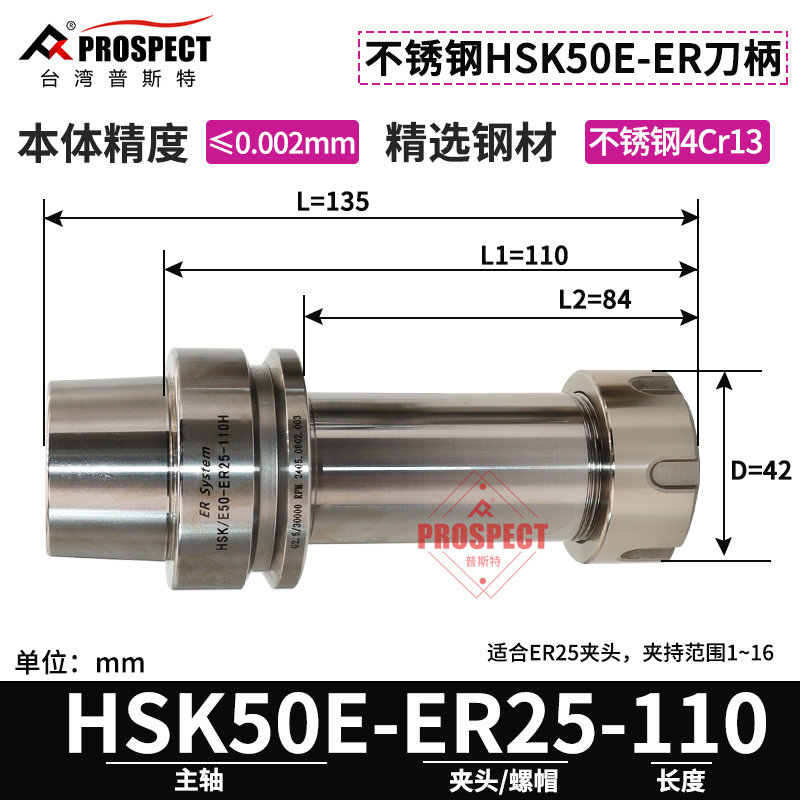 为您提供商品普斯特不锈钢数控刀柄高精度加工中HSK50E 110 ER16的详细介绍,
