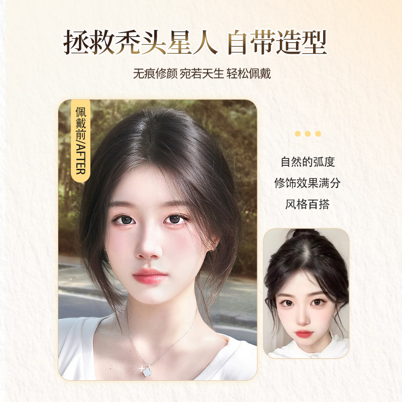 假发女片头顶真发补发蓬松高颅顶增发量遮白发前额无边仿真补发片由