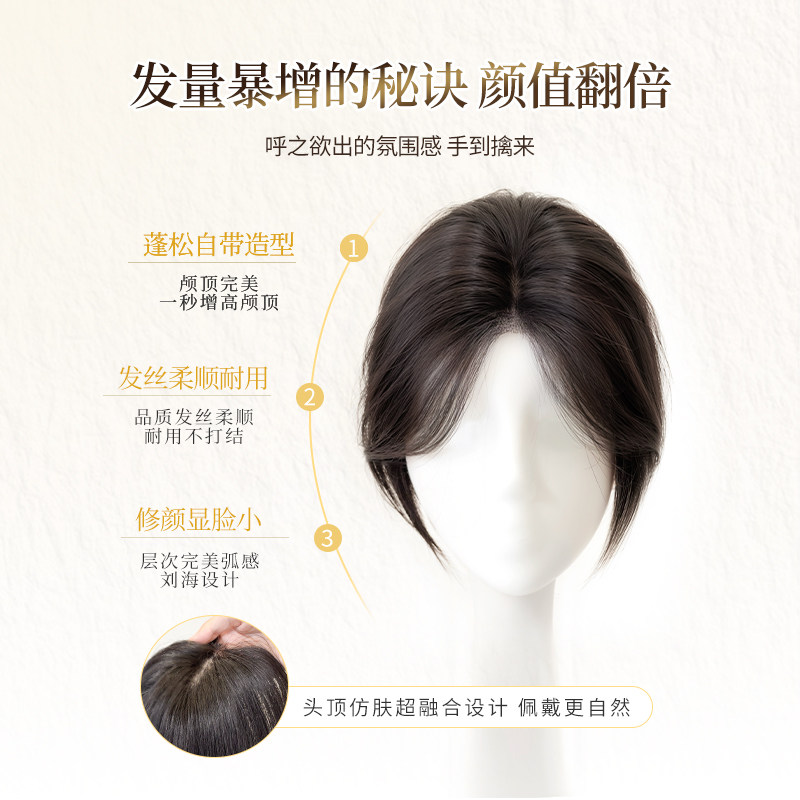 为您提供商品假发女片头顶真发补发蓬松高颅顶增发量遮白发前额无边仿真补发片的详细介绍,