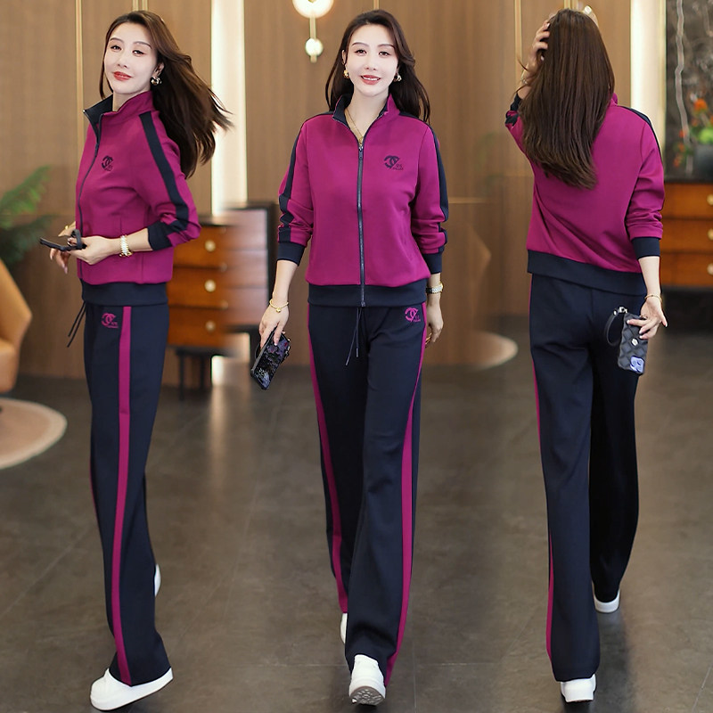 新款 时尚 运动套装 女2025春秋季 休闲跑步服两件套 洋气立领卫衣开衫由