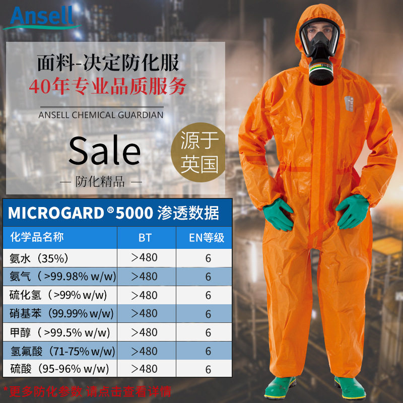 为您提供商品安思尔微护佳5000酸碱液氨氨气氯气石油化工危险品连体防化服套装的详细介绍,