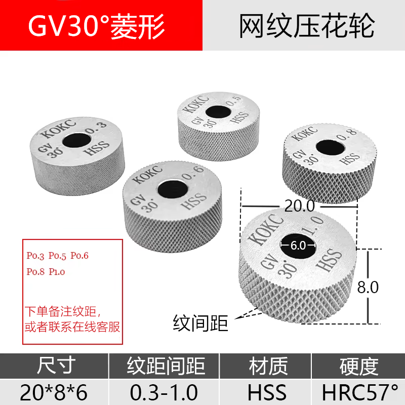 数控自动车床KOKC压花轮滚花刀20 6直纹斜网纹15 P0.8P1.0由