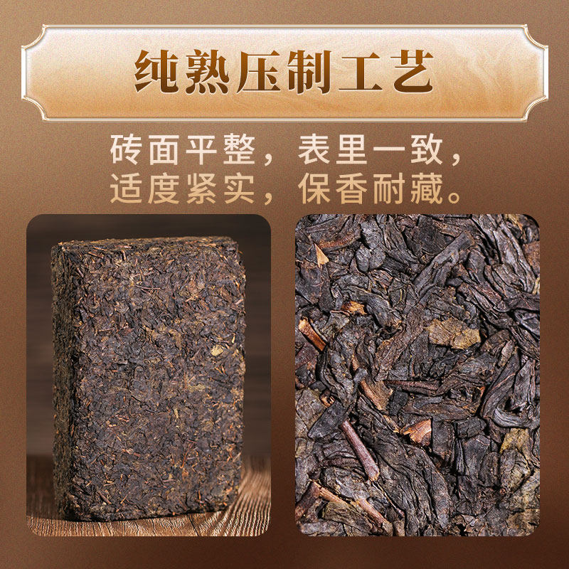 中粮中茶安化黑茶砖茶湖南茯茶金花手筑茯砖茶叶手工金茯黑茶