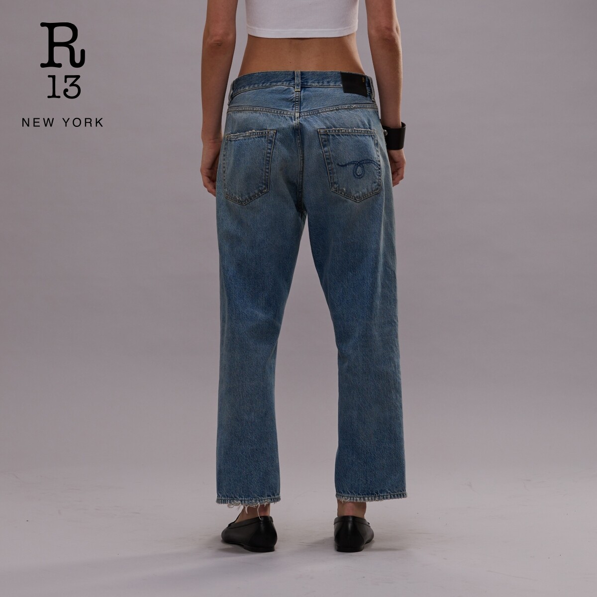 中腰直筒复古做旧靛蓝水洗牛仔裤 R13 季 末甄选
