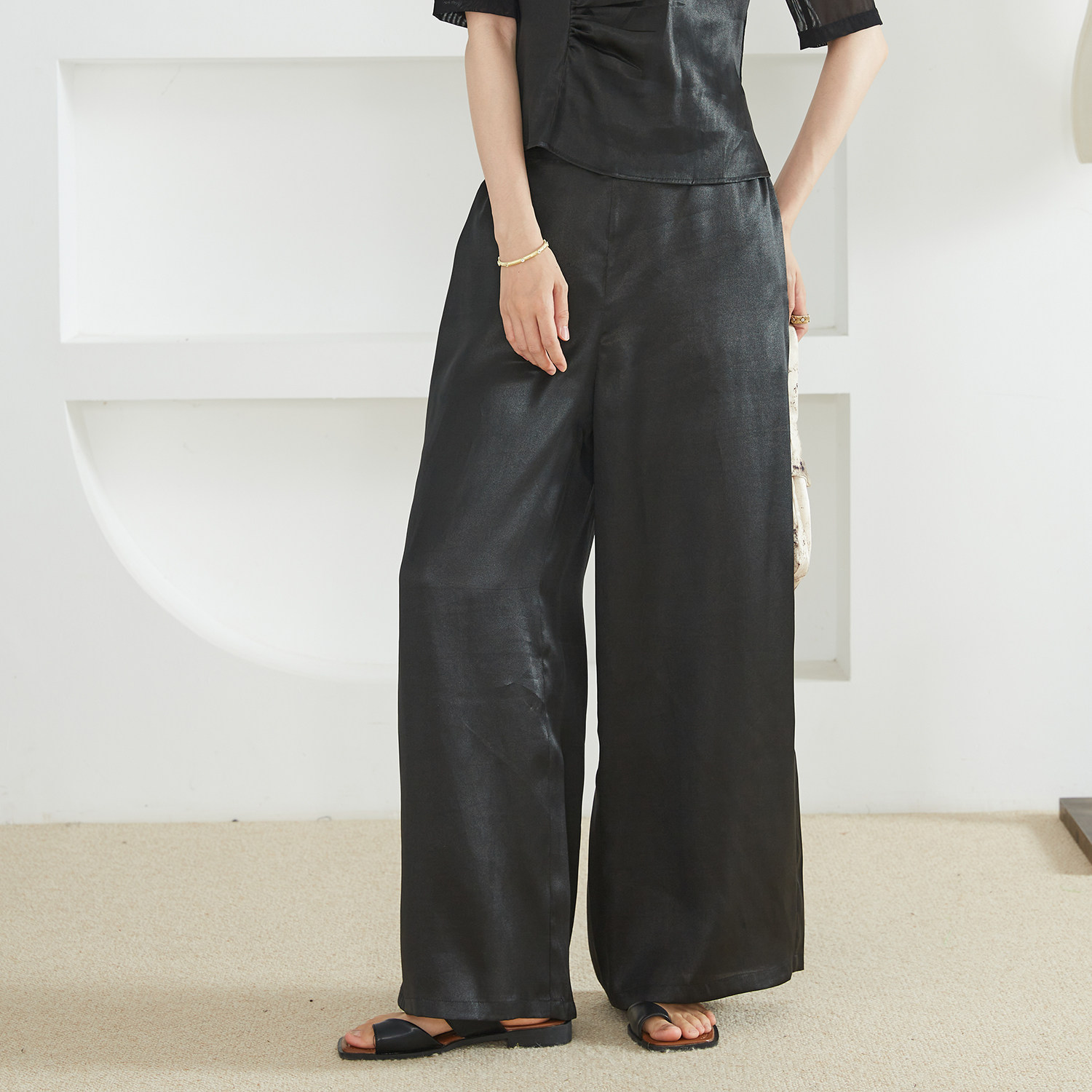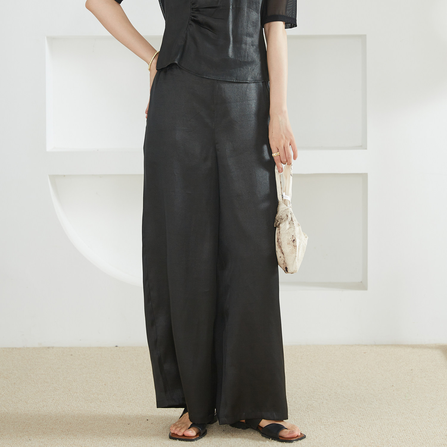 一丝牵小重缎香云纱皮子油光老料真丝阔腿裤 100%桑蚕丝直筒休闲裤由