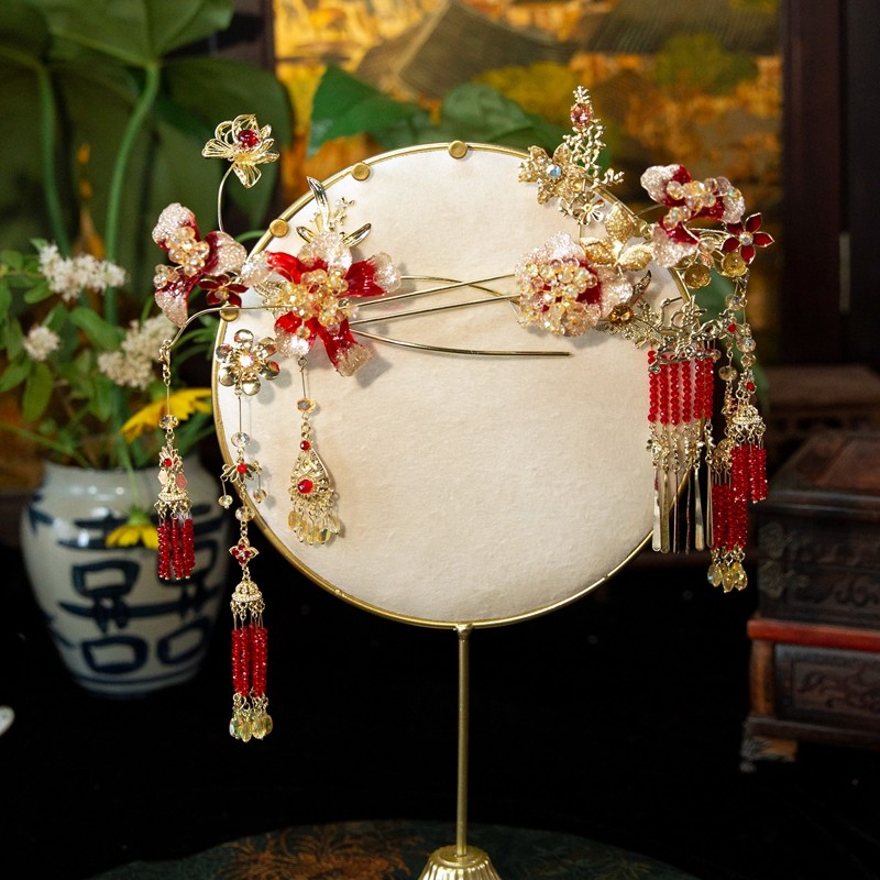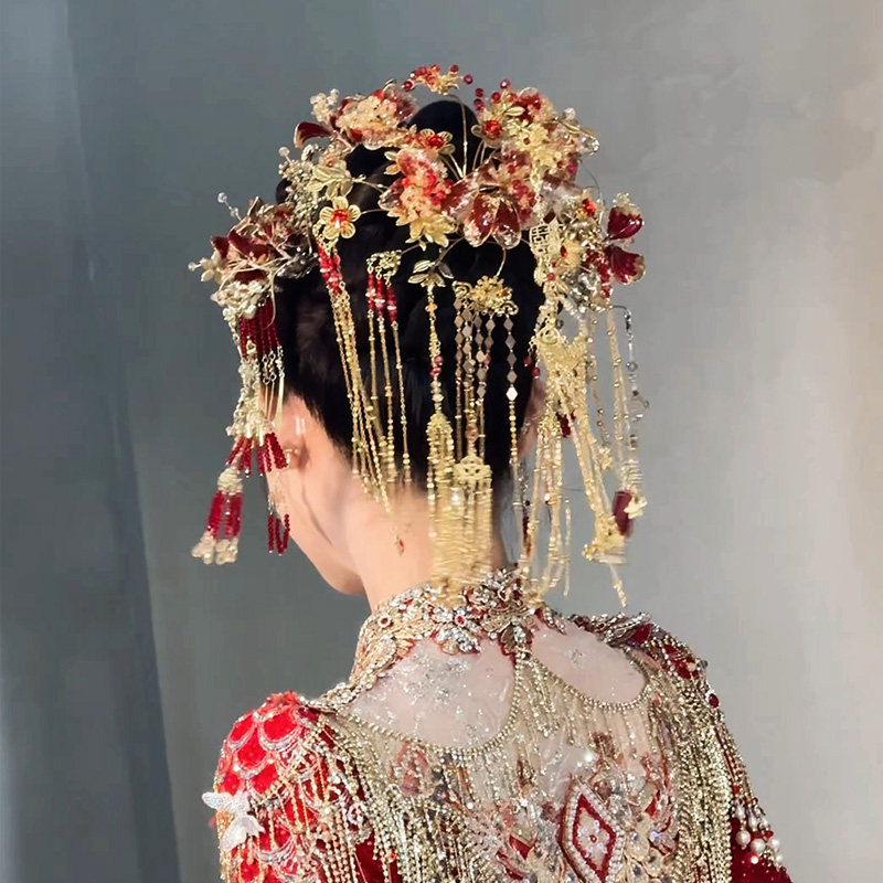 高级感新娘秀禾头饰甜美超仙花朵发簪古典龙凤褂发饰 水舞U2216由