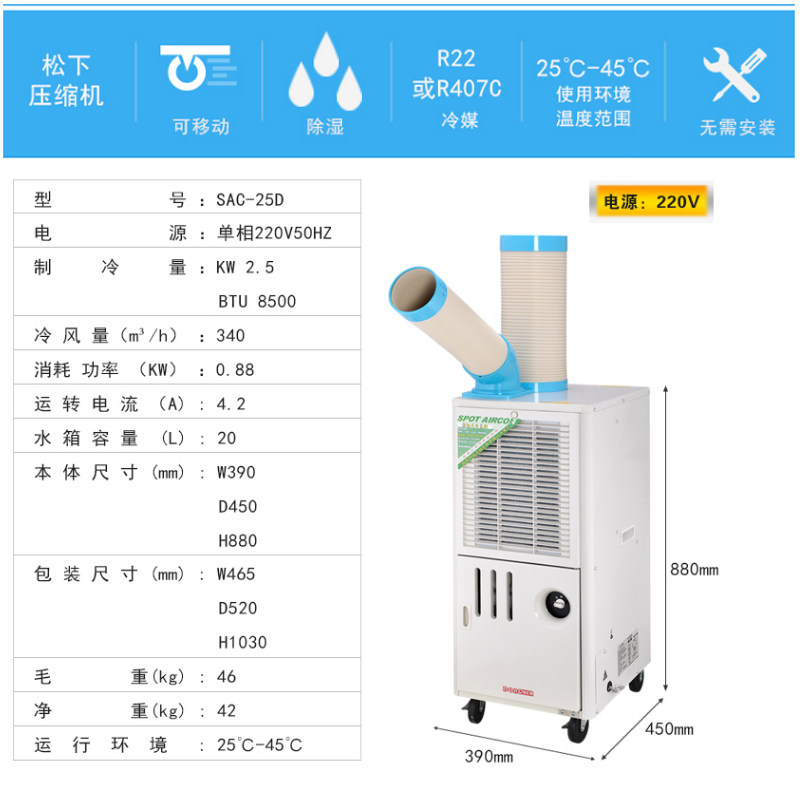为您提供商品25D工业冷气机移动空调车间岗位降温设备商用压缩机制冷 冬夏SAC的详细介绍,