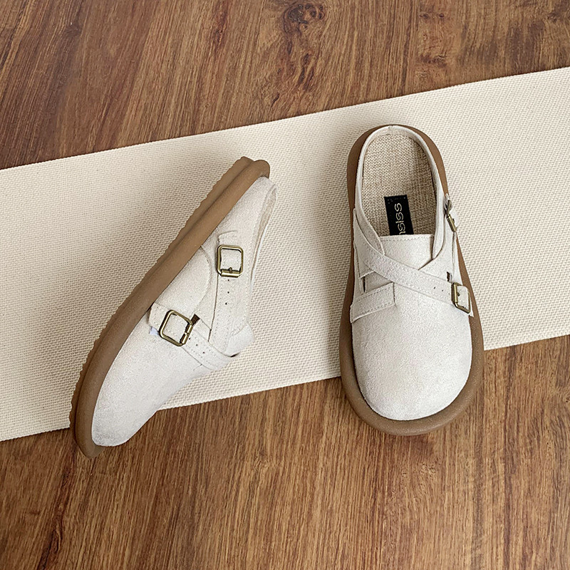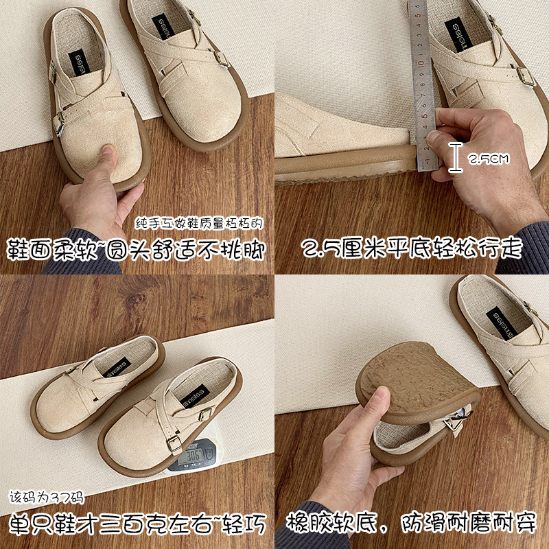 复古圆头女软底透气棉麻凉鞋 包头半拖鞋 2026新款 夏季 外穿 百搭拖鞋