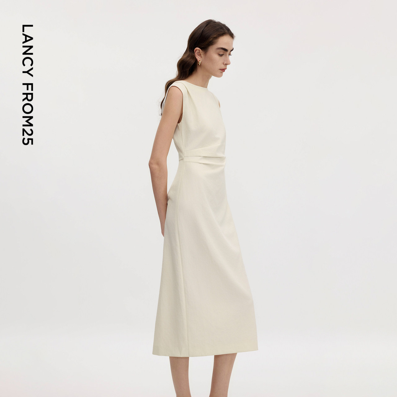 一字肩抽褶长裙夏装 Basic衣橱 朗姿25法式 礼服优雅连衣裙 新款