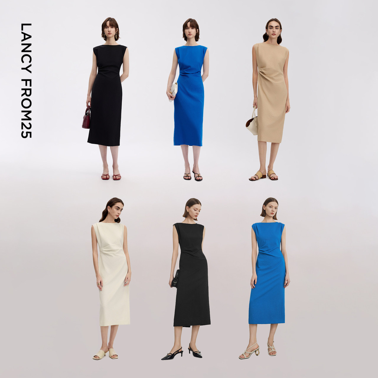为您提供商品一字肩抽褶长裙夏装 Basic衣橱 朗姿25法式 礼服优雅连衣裙 新款的详细介绍,