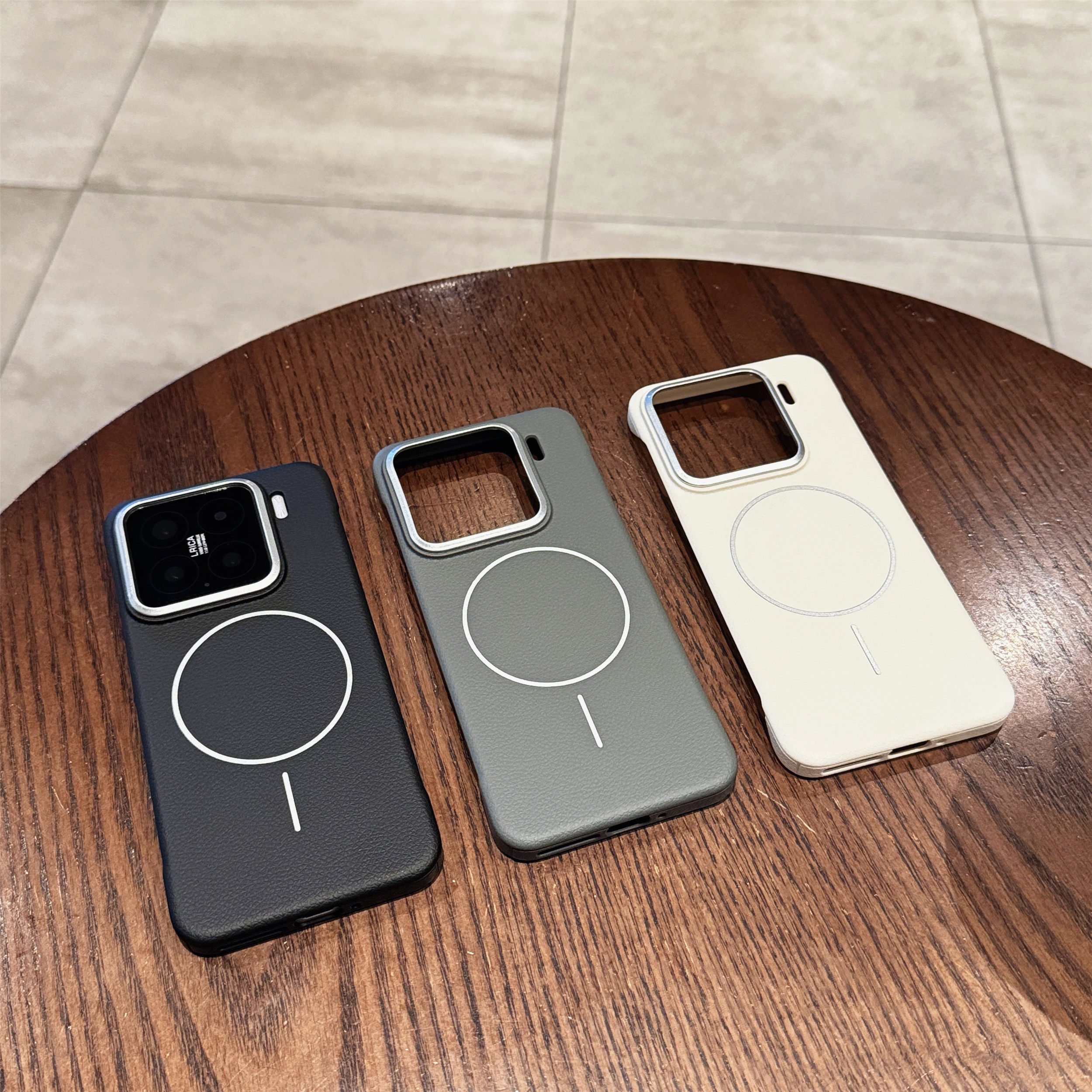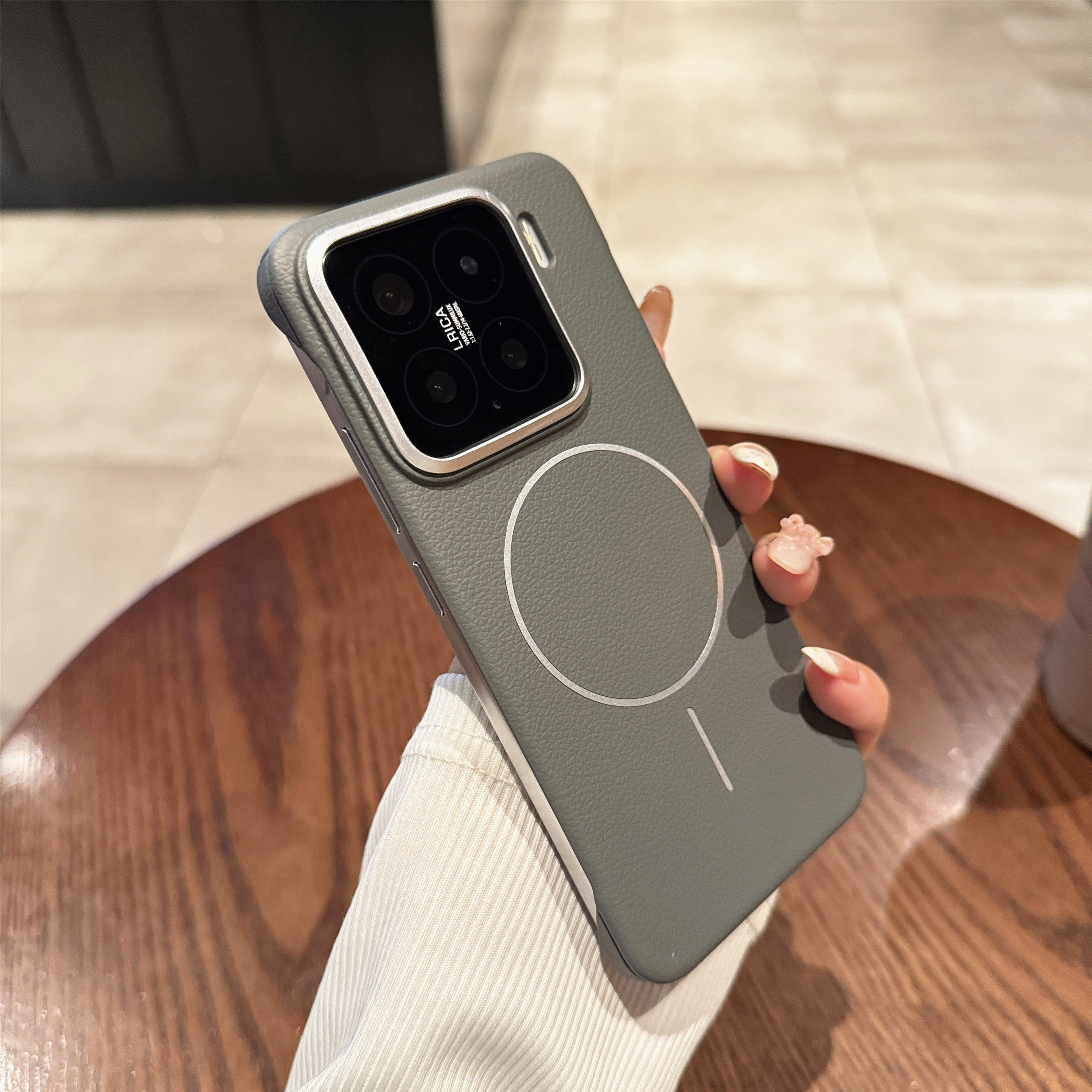 适用于小米15无边框手机壳细圈磁吸充电Xiaomi15高级感防指纹小米15Pro裸机手感超薄皮纹Xiaomi情侣时尚由