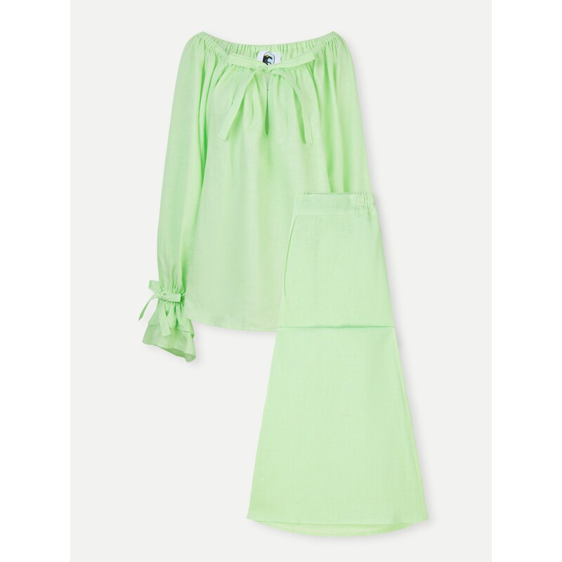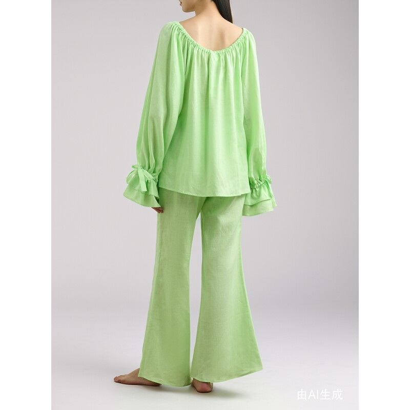 SLEEPER春夏女士系带细节亚麻睡衣套装