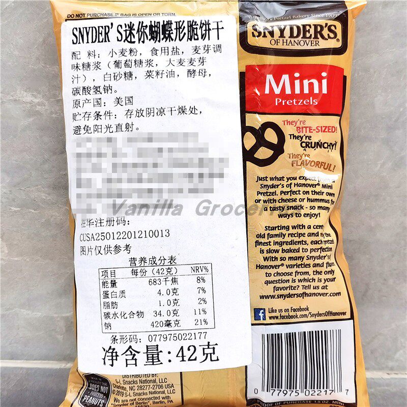 为您提供商品Mini Pretzels美国施耐德迷你蝴蝶型面包酥椒盐脆饼干 Snyder的详细介绍,