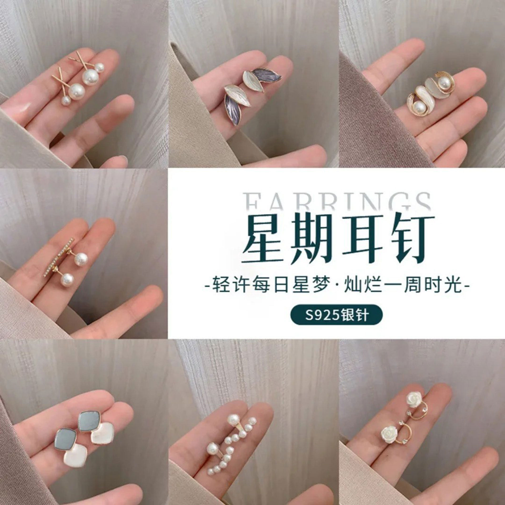 为您提供商品2025新款 洋气s925纯银一周星期耳环女生日礼物多耳洞耳钉组合套装的详细介绍,
