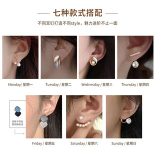 2025新款 洋气s925纯银一周星期耳环女生日礼物多耳洞耳钉组合套装由