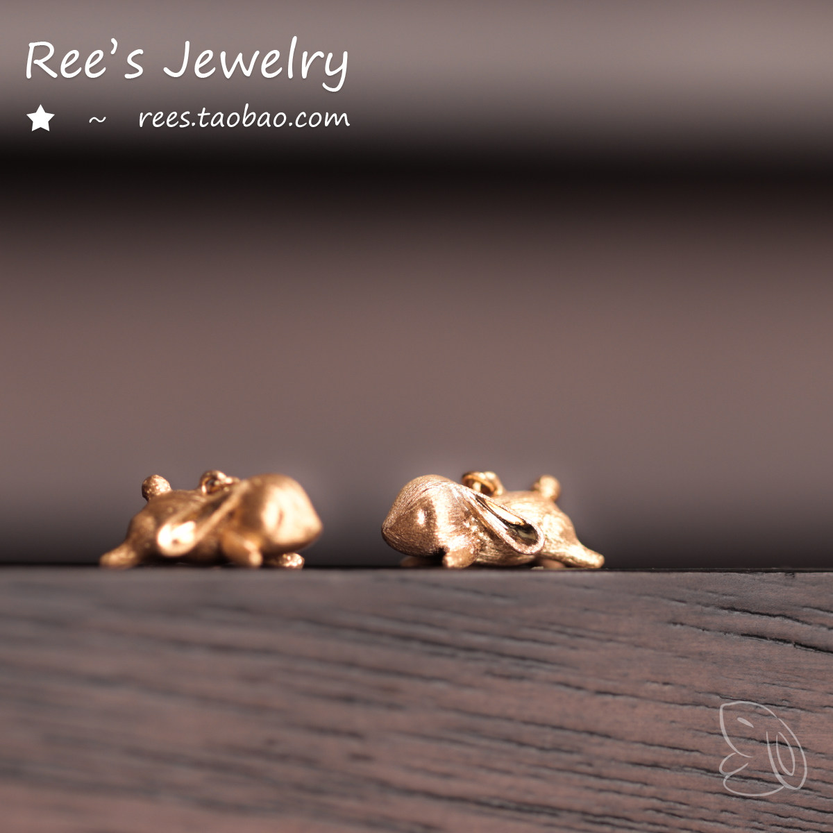 18k黄金素金超萌兔子生肖本命年耳环ins耳钉 Ree原创.糯米团由