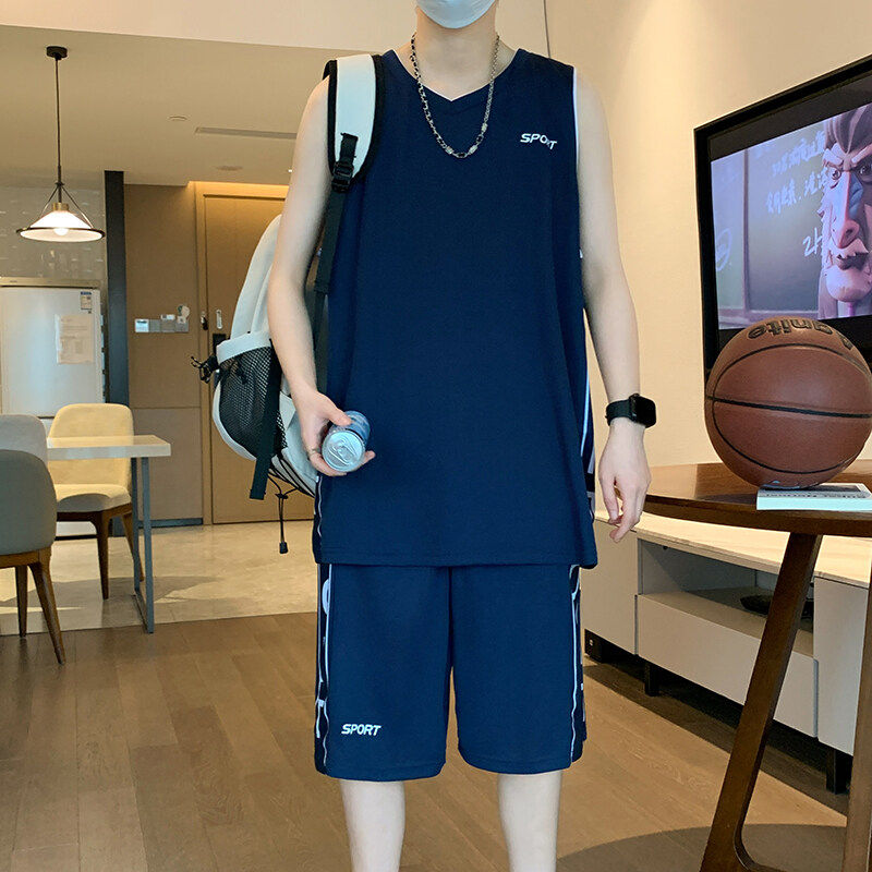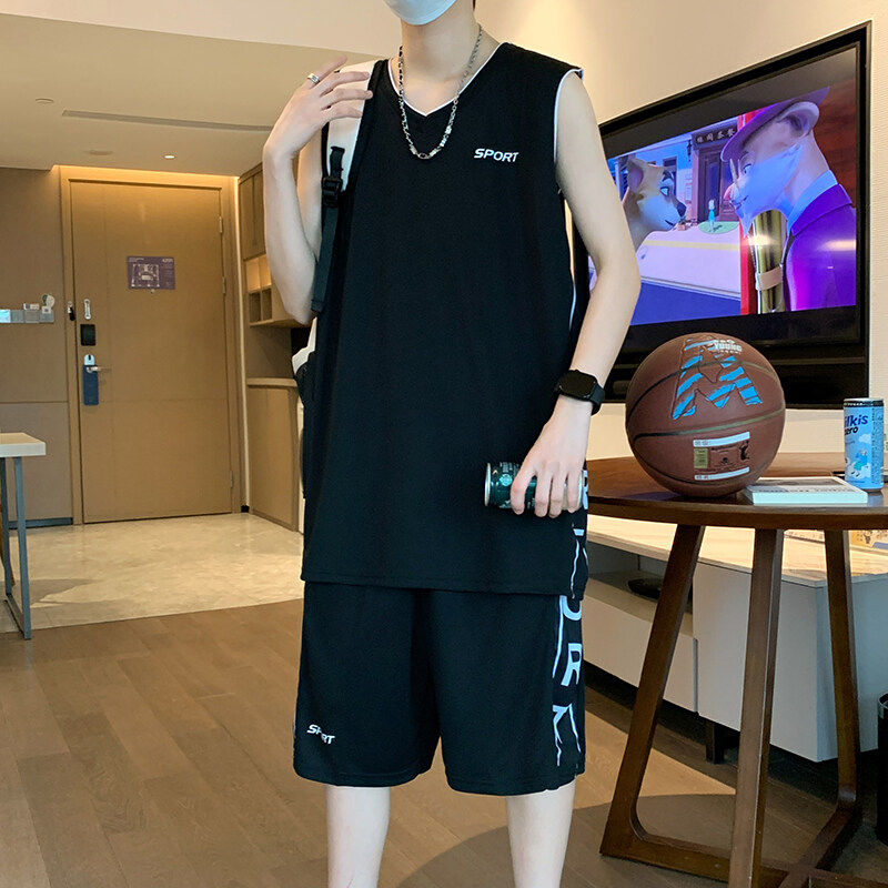 T恤男士 休闲运动套装 男夏季 冰丝凉感无袖 搭配一套篮球服T 背心短裤