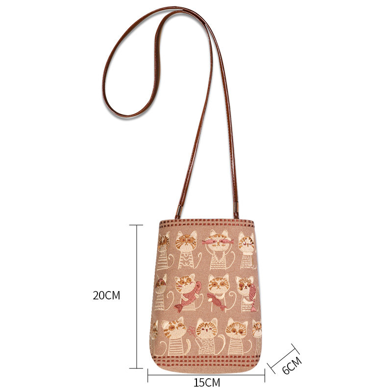 散步包包 猫咪手机包休闲刺绣原创插画女斜挎袋迷你小包高级感女式
