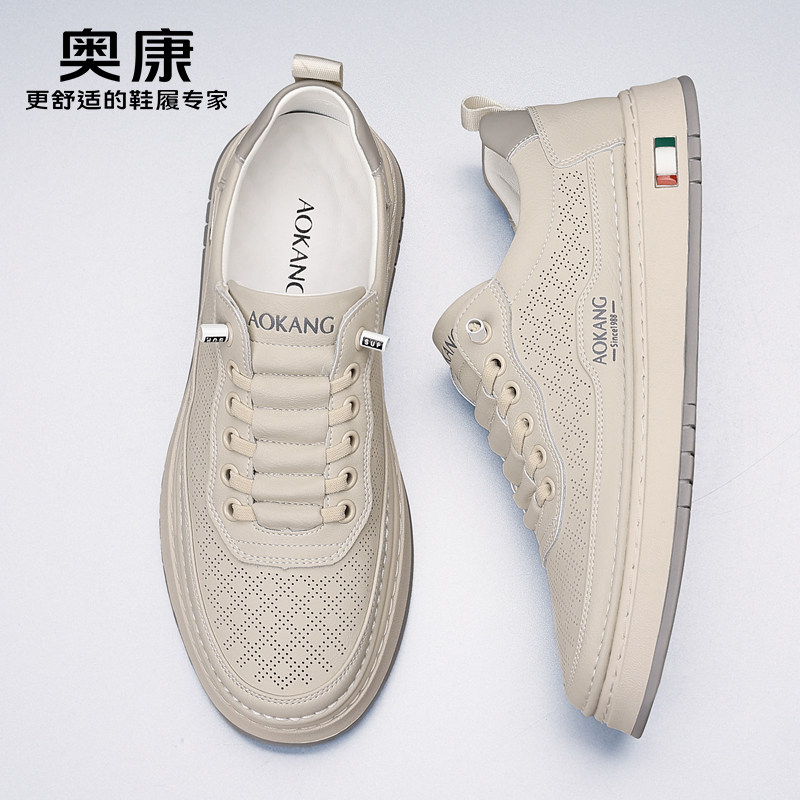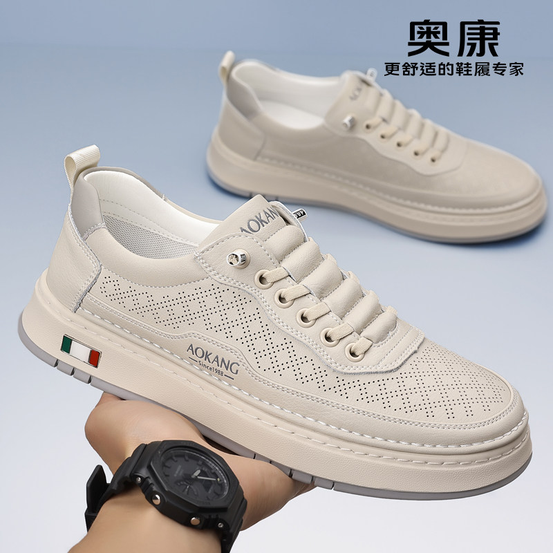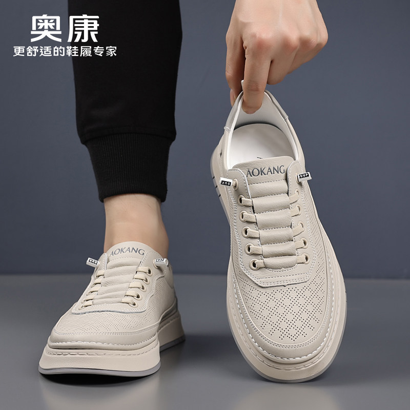 男士 奥康男鞋 2026新款 真皮牛皮透气休闲皮鞋 男 软底一脚蹬镂空板鞋由