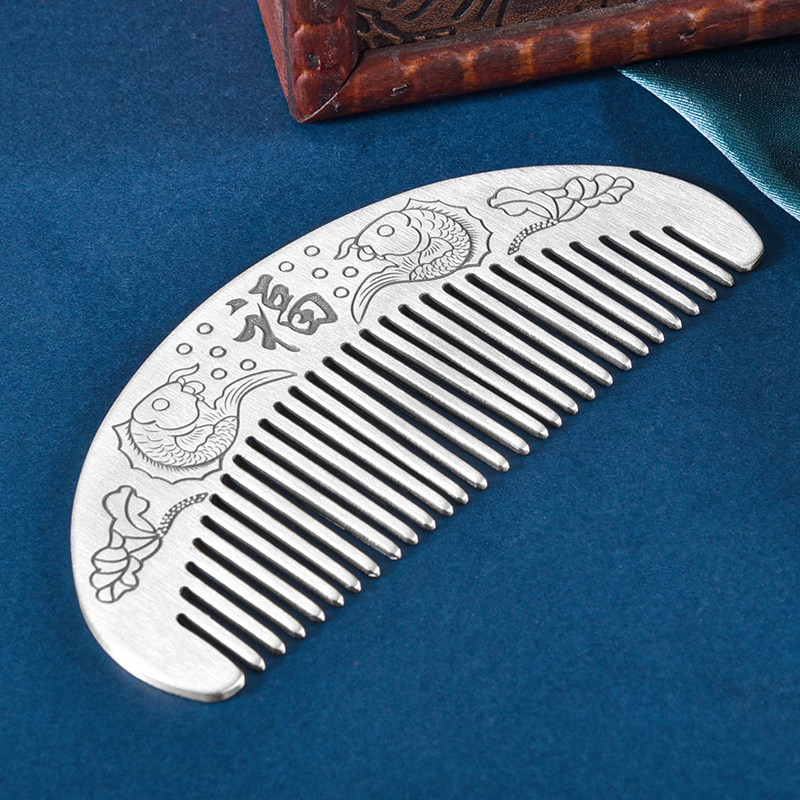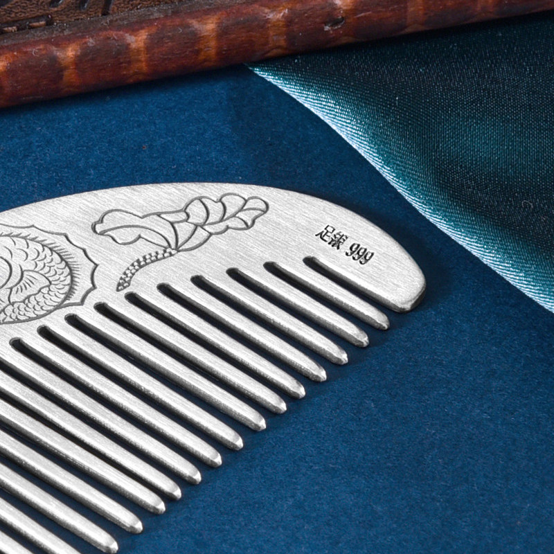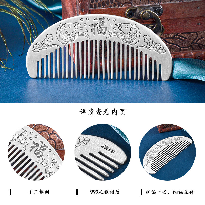 为您提供商品古风S999足银锦鲤双面镌刻雕花便携梳小梳子刘海梳无柄梳纯银梳子的详细介绍,