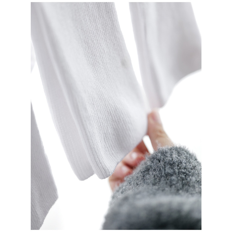 袜子女款 薄款 100%全棉中筒白色堆堆袜春款 抗菌防臭长筒袜 纯棉夏季