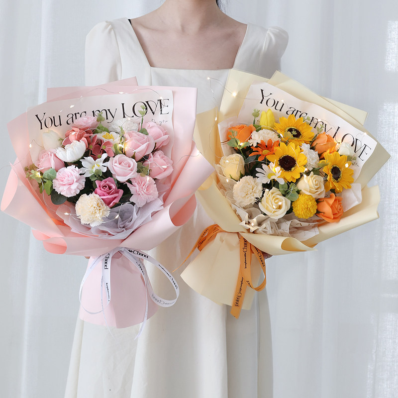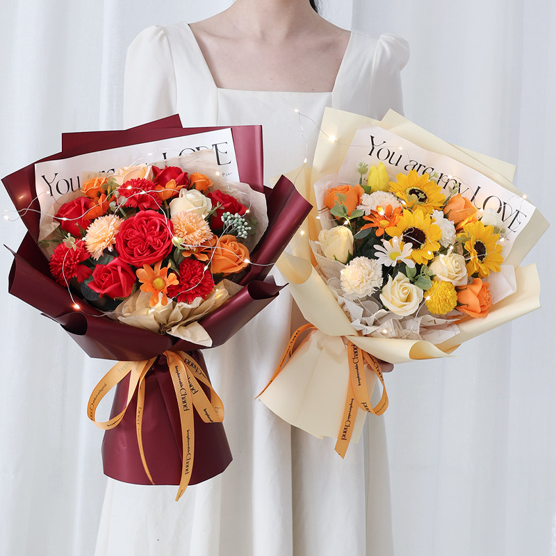 创意玫瑰香皂花混搭仿真大花束情人节生日礼物仿真花送女朋友闺蜜