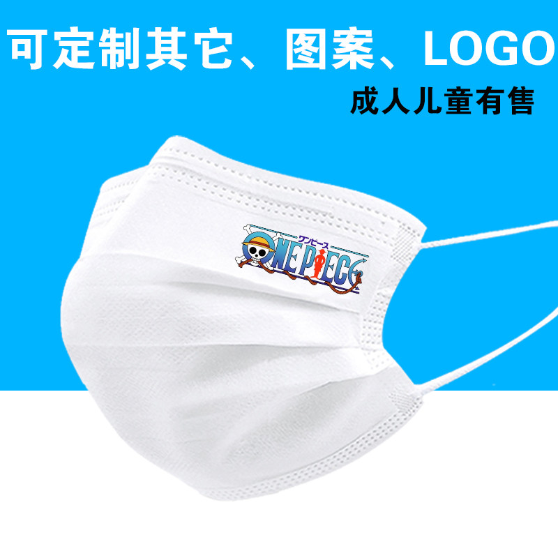为您提供商品海贼王主题卡通图案印花一次性三层成人儿童防护口罩LOGO文字定制的详细介绍,