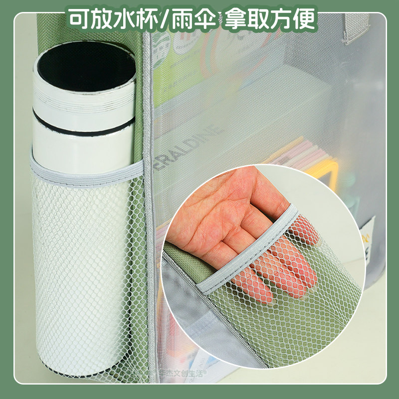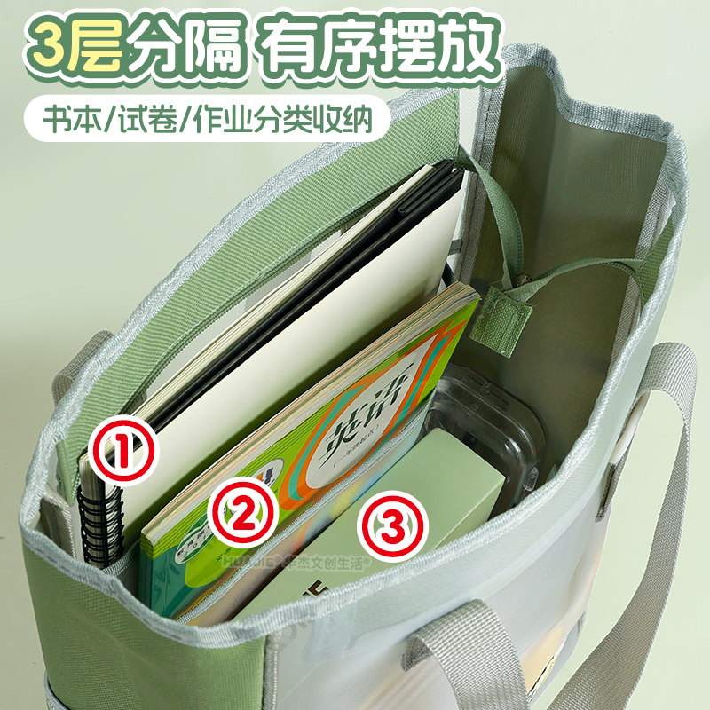 网纱透明手提袋补习袋小学生多层分类收纳袋文件袋大容量便携资料袋男生女生补课包侧口袋多功能试卷袋 拉链式