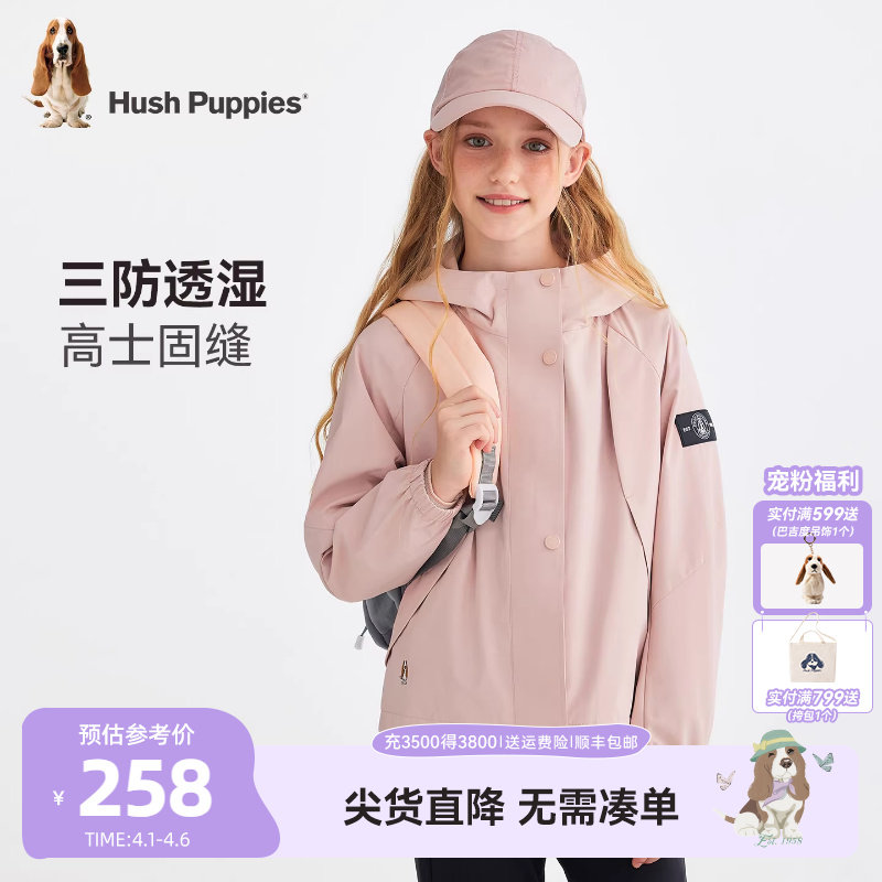 暇步士童装 大童轻户外上衣儿童休闲连帽外套 女童三防风衣春秋新品