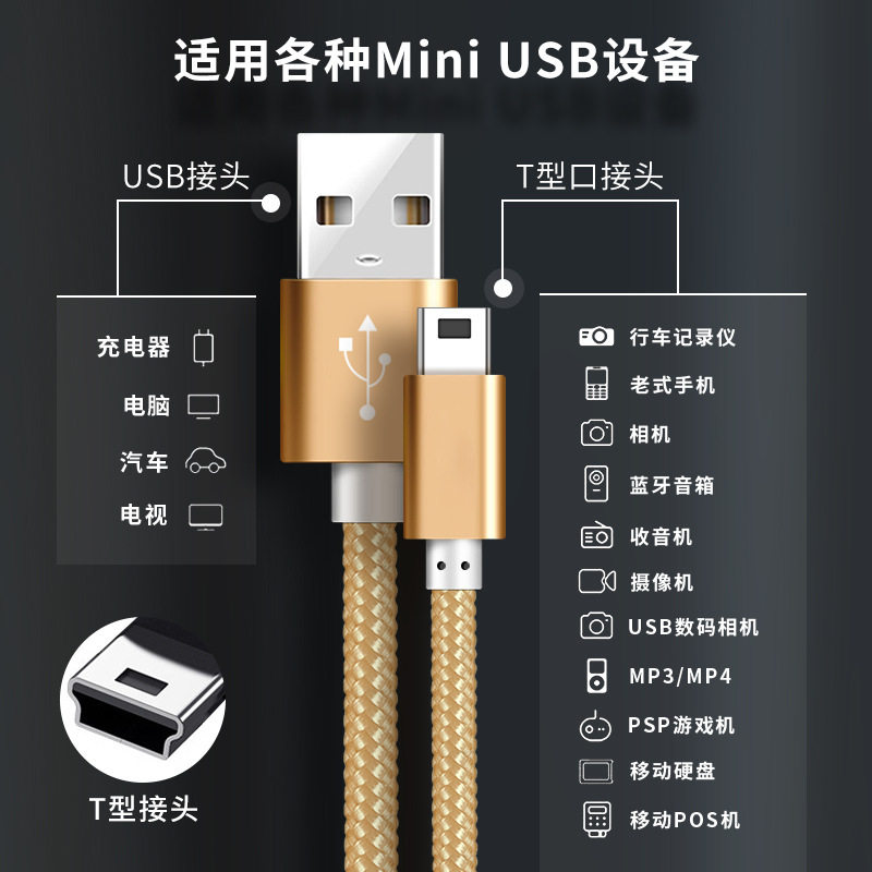 USB充电器mp3老人机mp4手机收音机唱戏充电线相机移动硬盘电脑连接线 V3行车记录仪T型口数据线车载迷你mini由