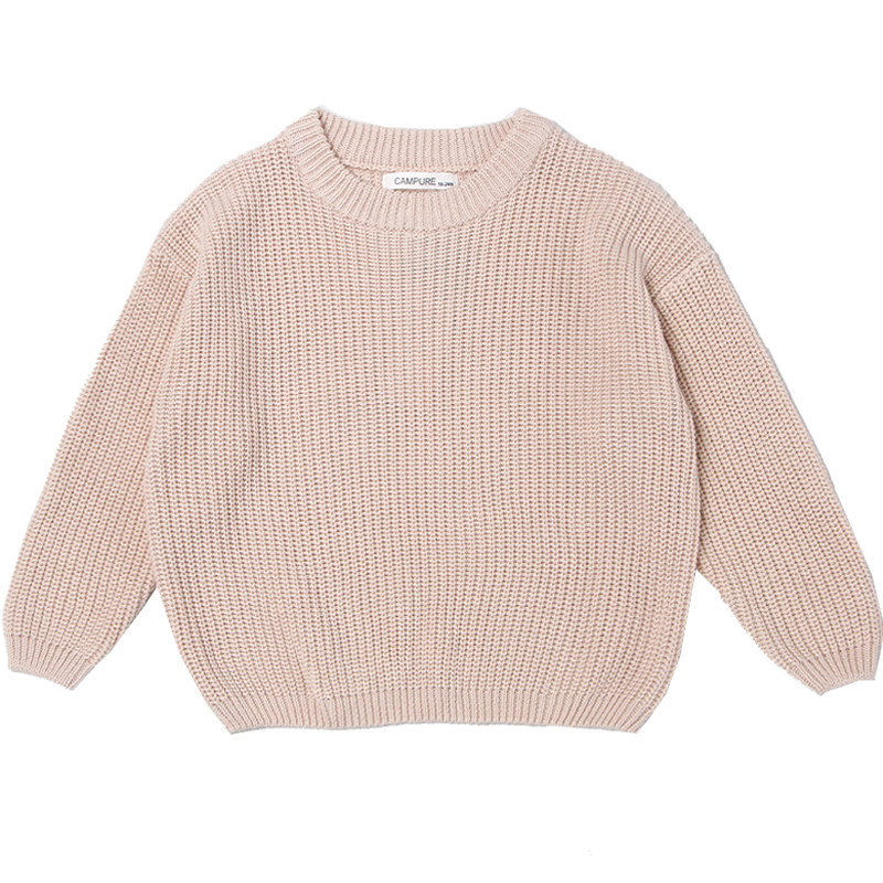ins婴幼儿童男女宝宝棉线小粗针织复古圆领宽松慵懒套头针织毛衣由