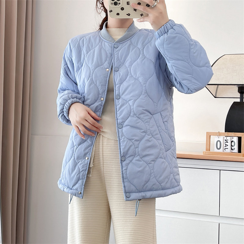 2024秋冬季 保暖外套胖mm大码 轻薄款 立领葫芦格压线棉衣 女士新款由