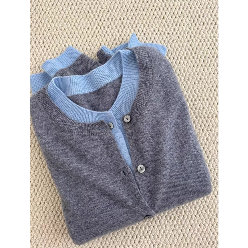为您提供商品设计感假两件大码 内搭单排扣毛衣 女秋冬2025新款 深灰色圆领针织衫的详细介绍,