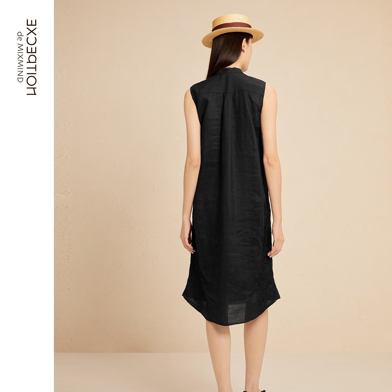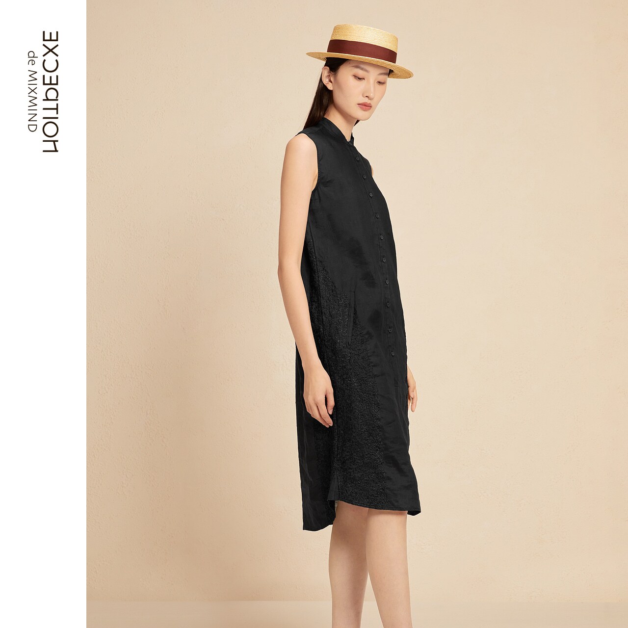 连衣裙无袖 绣花直筒立领中长裙子 春季 EXCEPTION例外女装由