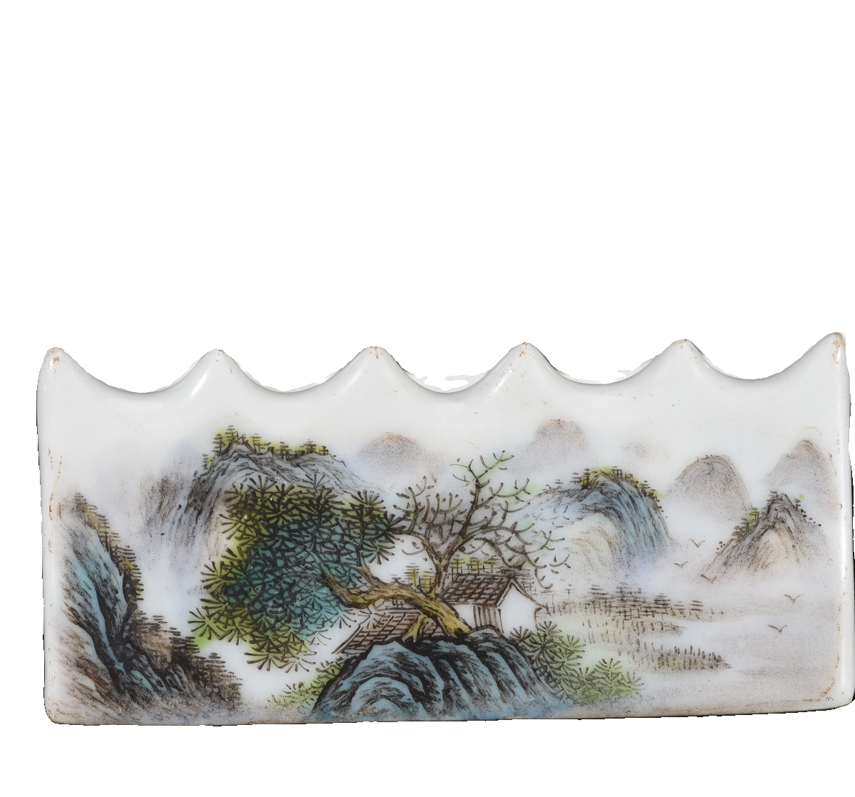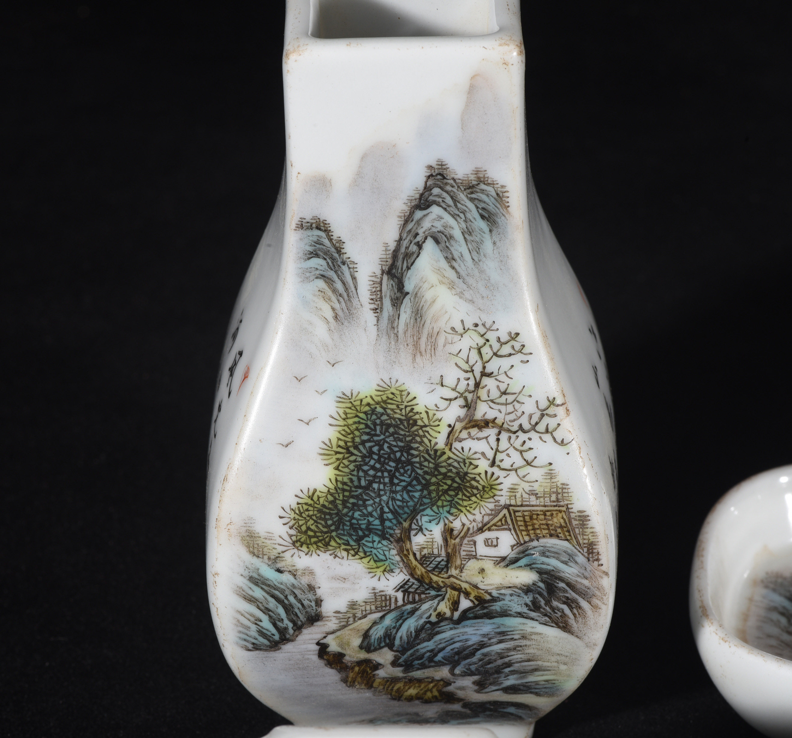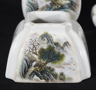 粉彩山水纹文具一套 建国初期邹国均款由