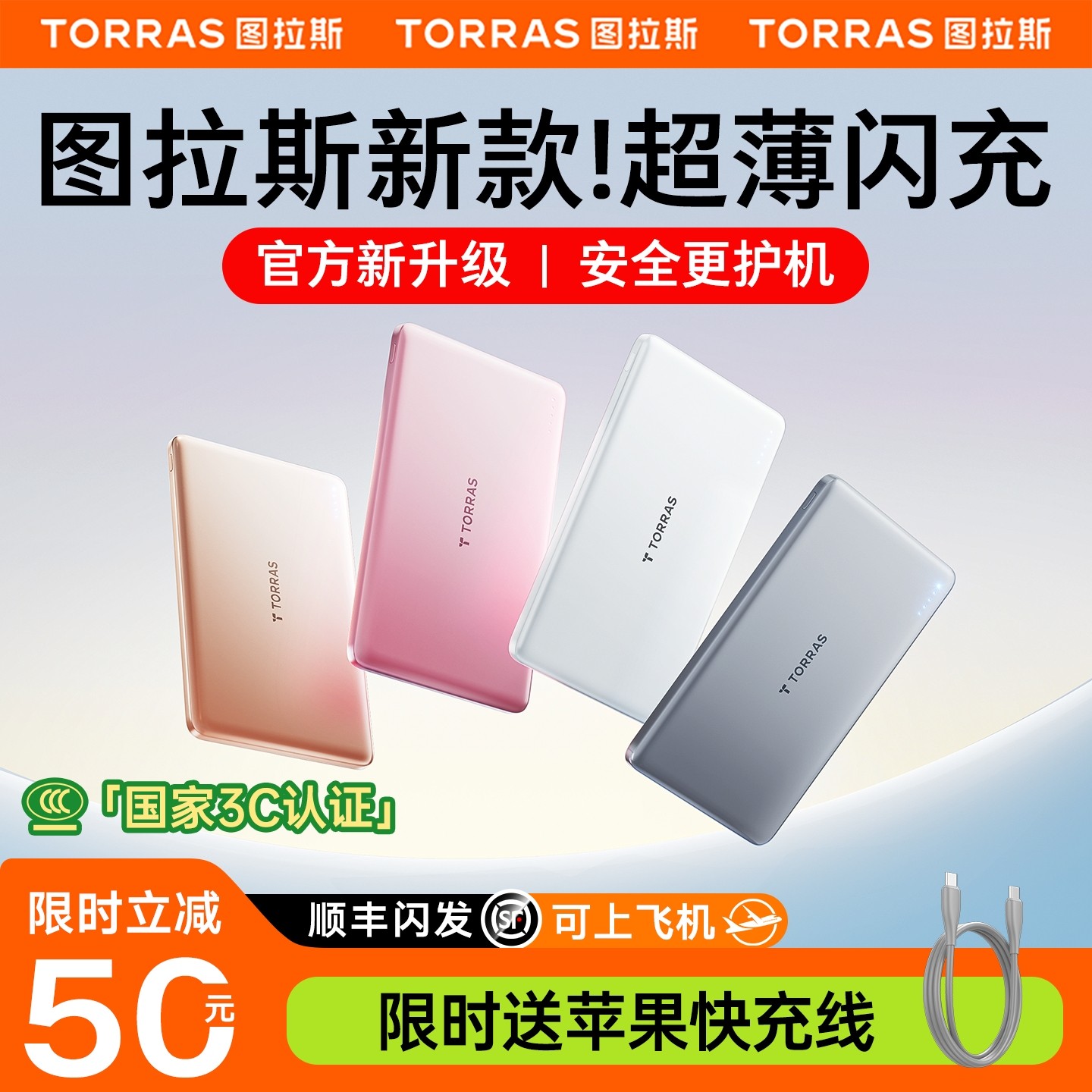 图拉斯小方块自带线充电宝3C认证可上飞机20000毫安2026新款 手机移动电源小巧适用苹果 华为 papi酱同款