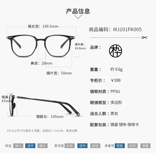 为您提供商品专柜正品 多边形眼镜框架轻盈PPSU男女造型百搭 MJ101FK005时尚的详细介绍,