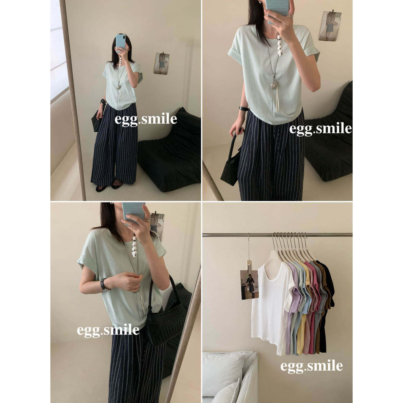 圆领简约10色慵懒雪花棉卷边短袖 T恤韩风百搭纯色显瘦 新款 egg夏季由