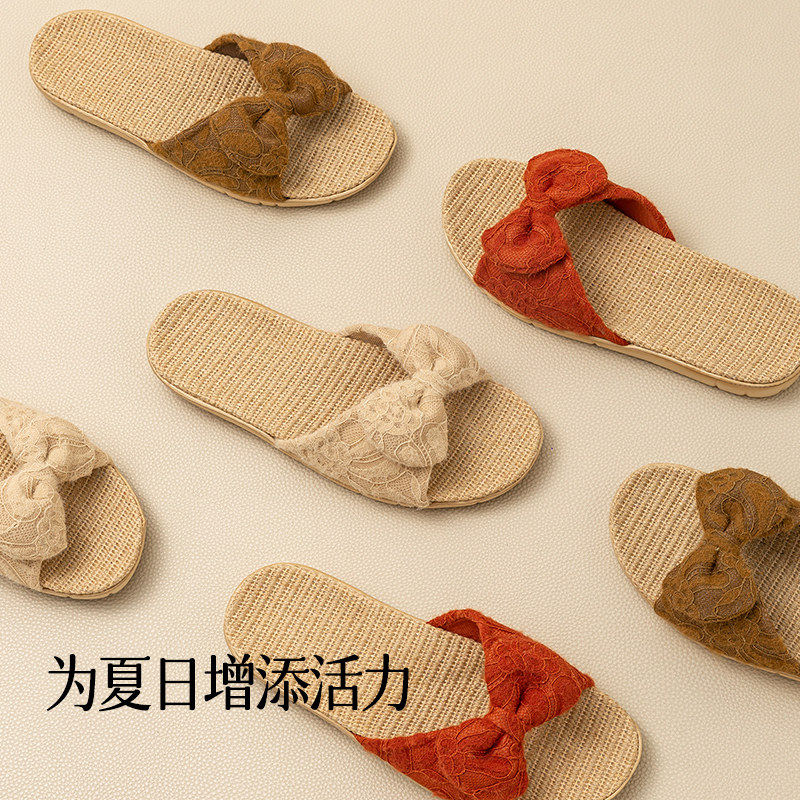 夏季 2025日式 复古亚麻特价 拖鞋 室内居家透气静音防滑 情侣家居新款