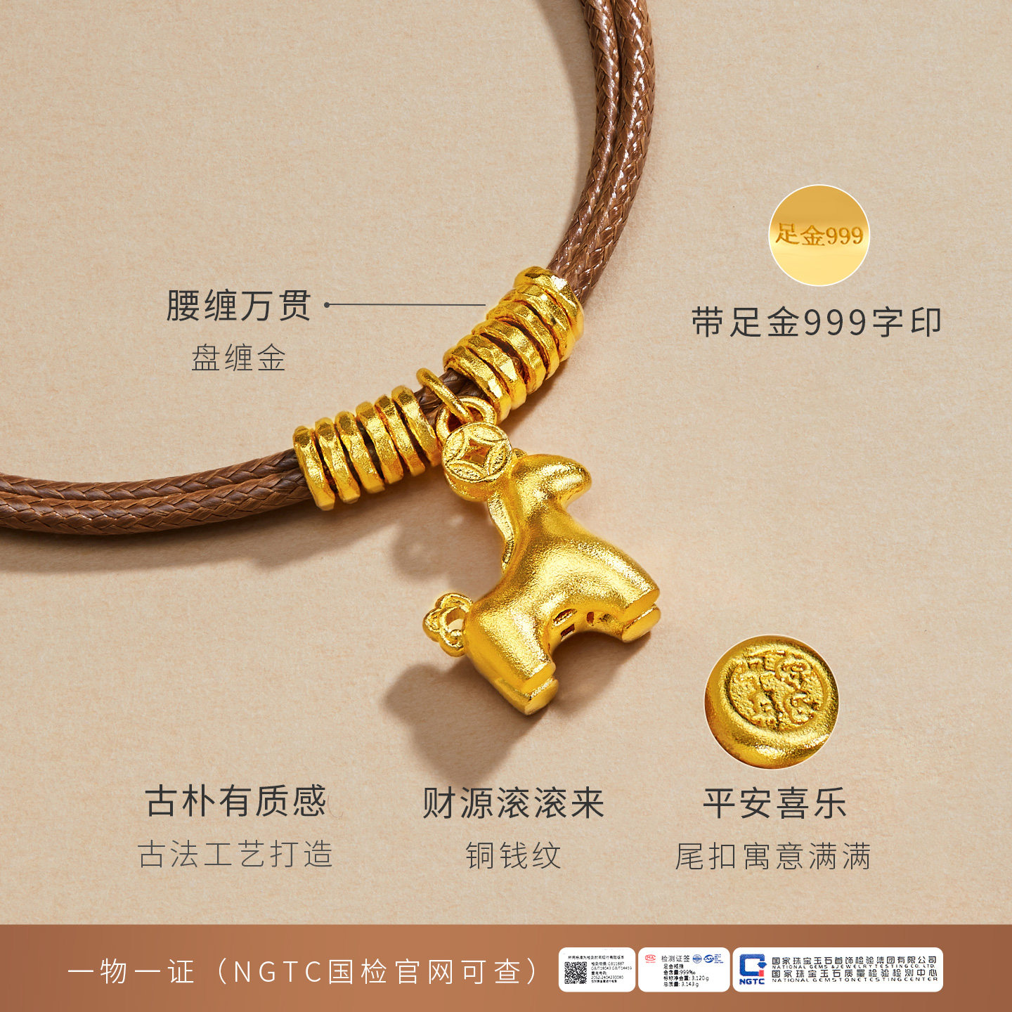 为您提供商品金至尊马不停财黄金手链足金999生肖马手链盘缠金手链生日礼物的详细介绍,