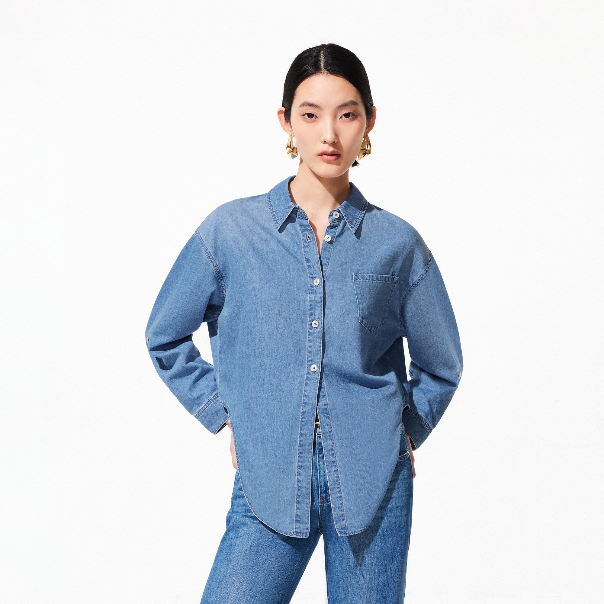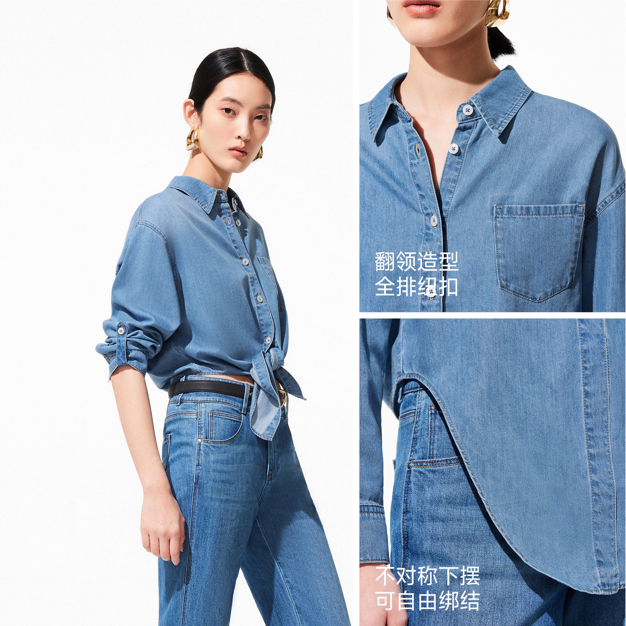 新款 Vero Moda衬衫 女2026夏季 子两穿牛仔上衣简约 含莱赛尔绑结袖由